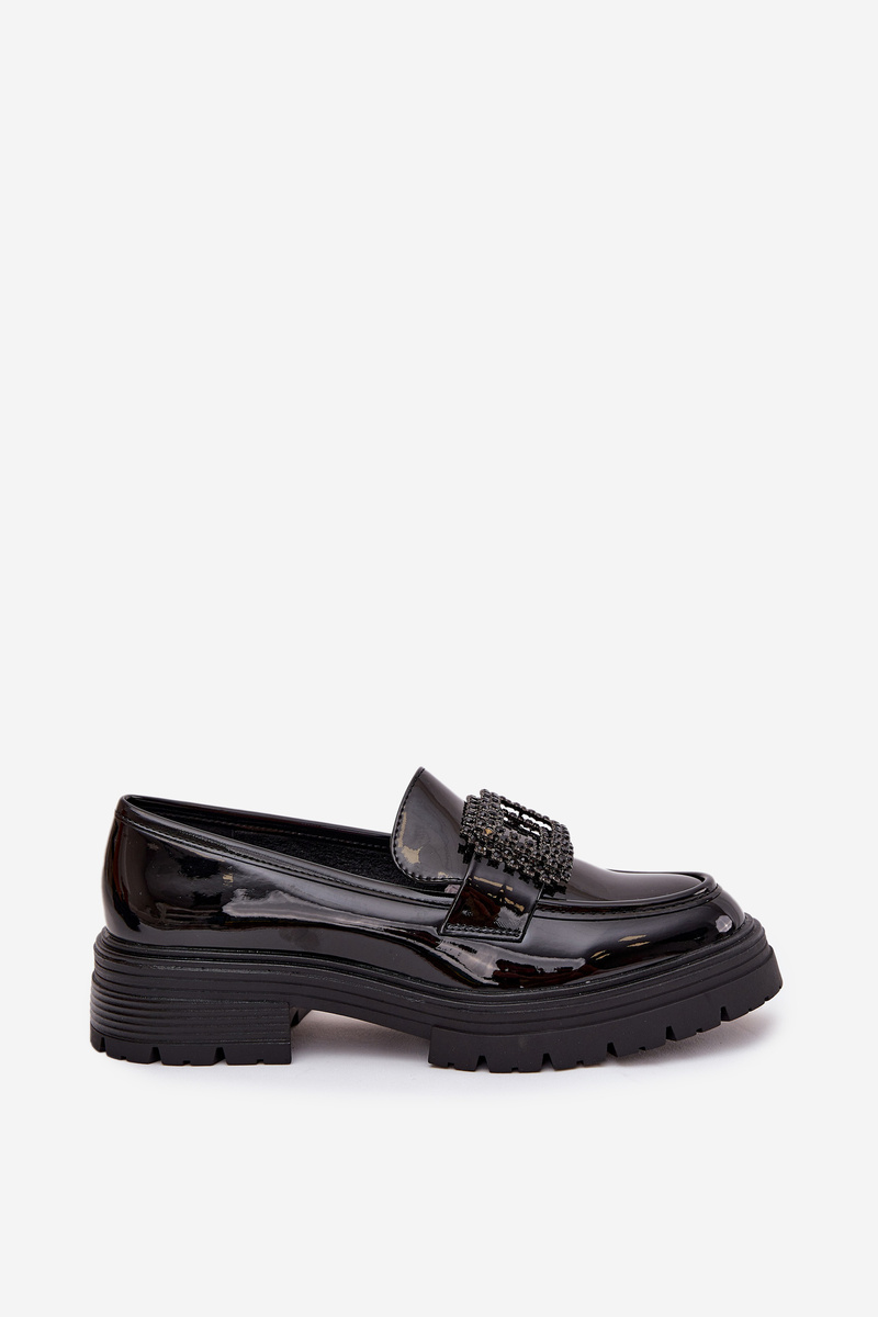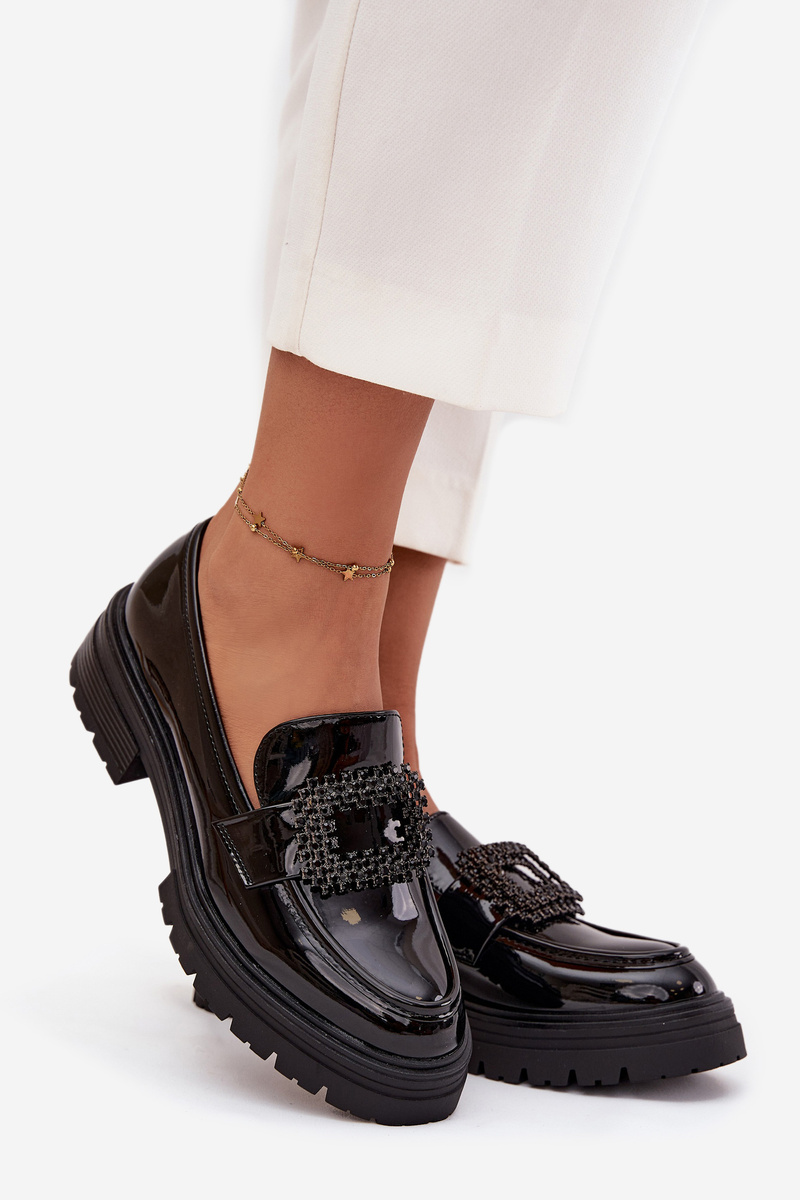 Damskie Półbuty Mokasyny Ozdobna Klamra Lakierowane Czarne Luvianne