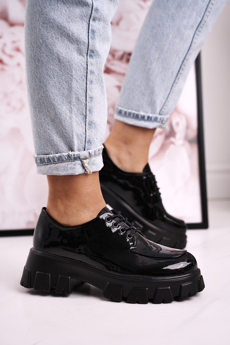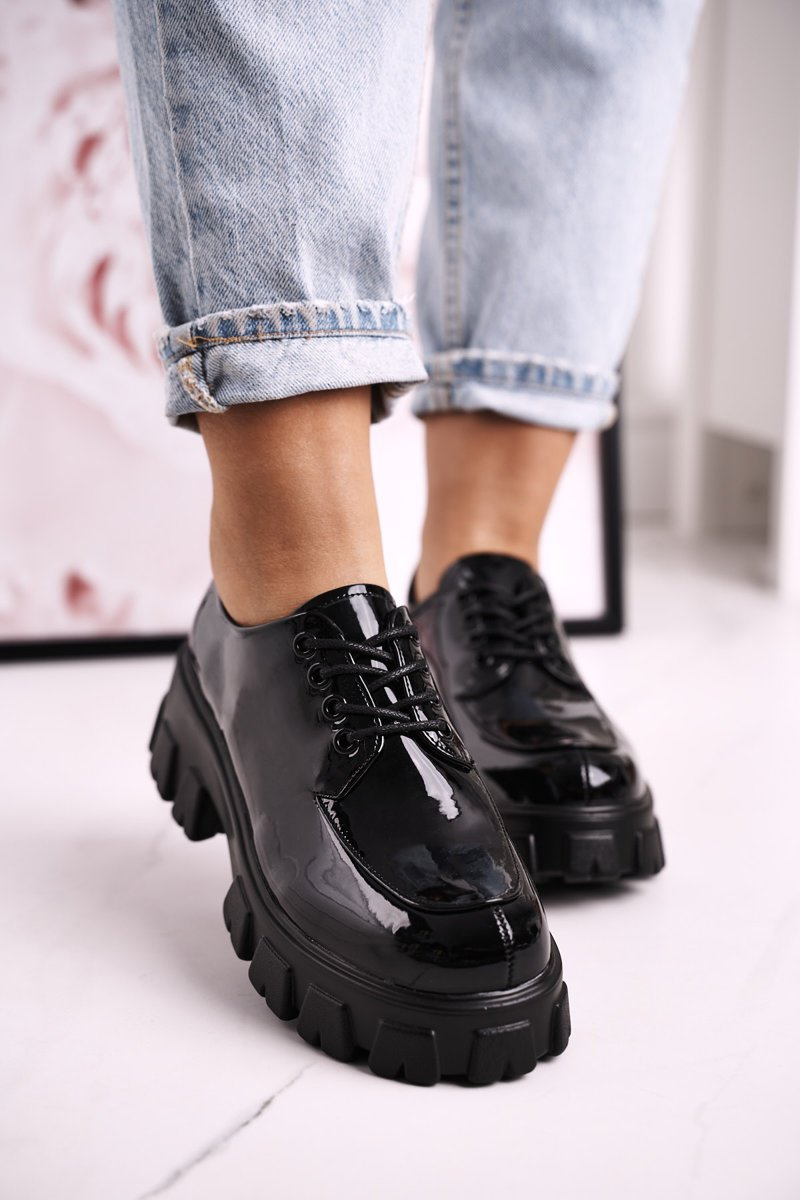 Damskie Półbuty Oxfordy Na Masywnej Platformie S.Barski HX23 Lakierowane Czarne