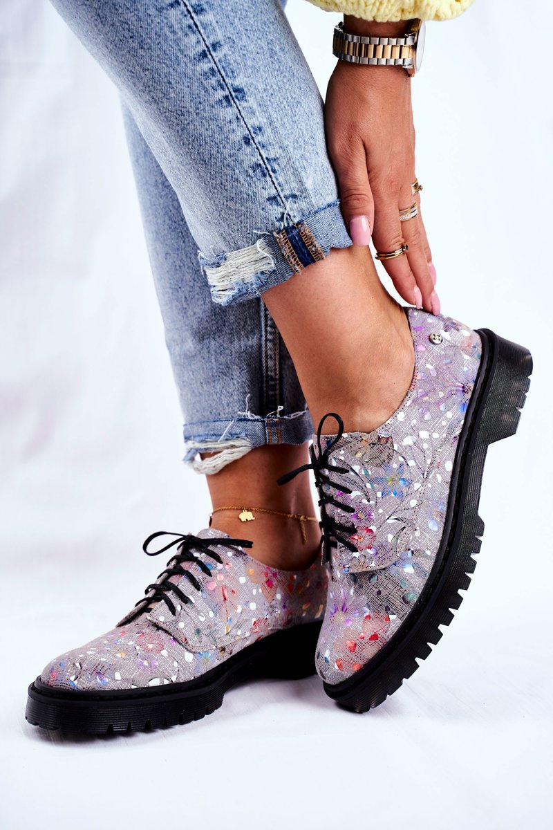 Damskie Półbuty Oxfordy Popiel Skórzane Maciejka 04087-13
