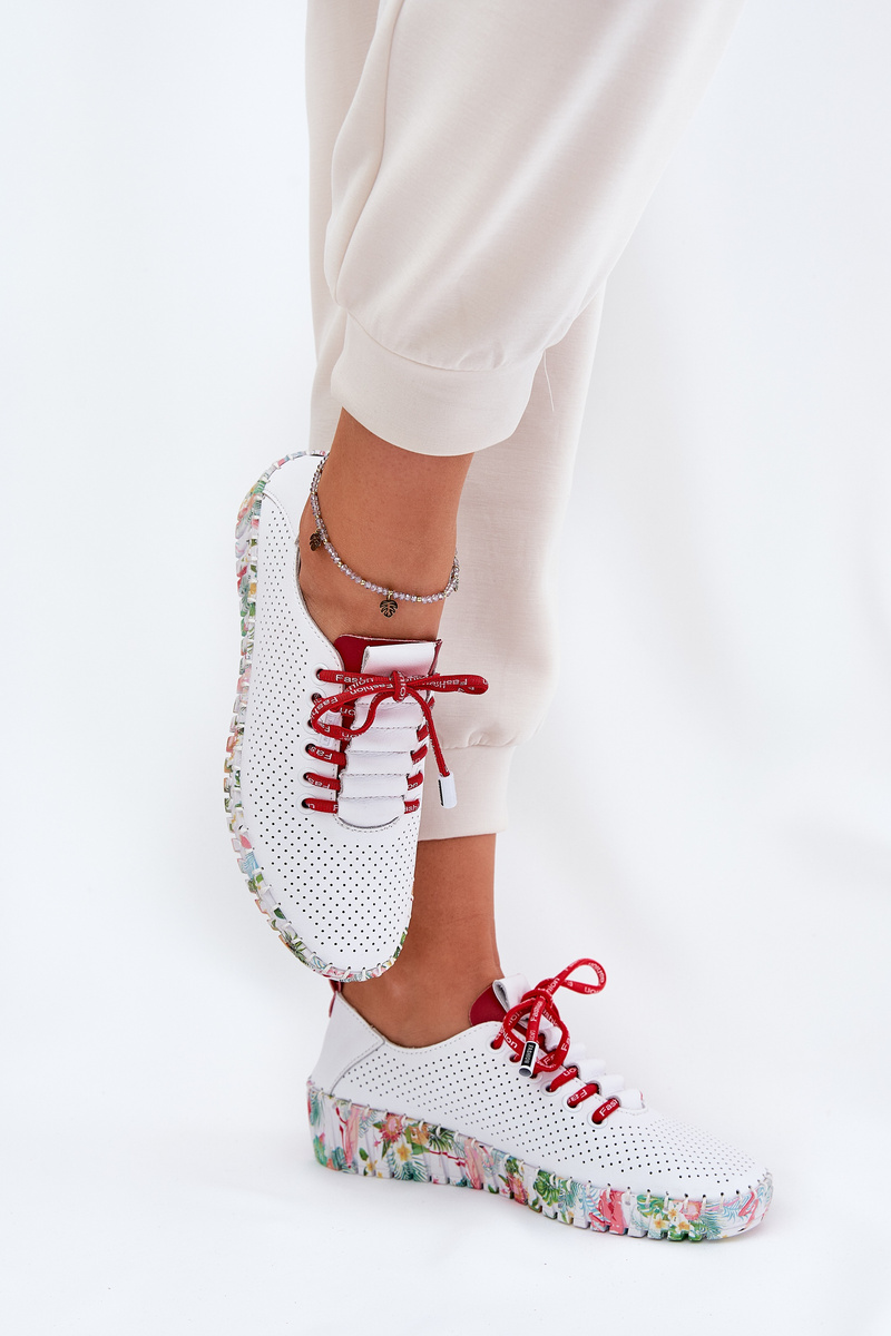 Damskie Półbuty Skóra Naturalna Wzorzysta Platforma Biało-Czerwone Artiker 54C1567