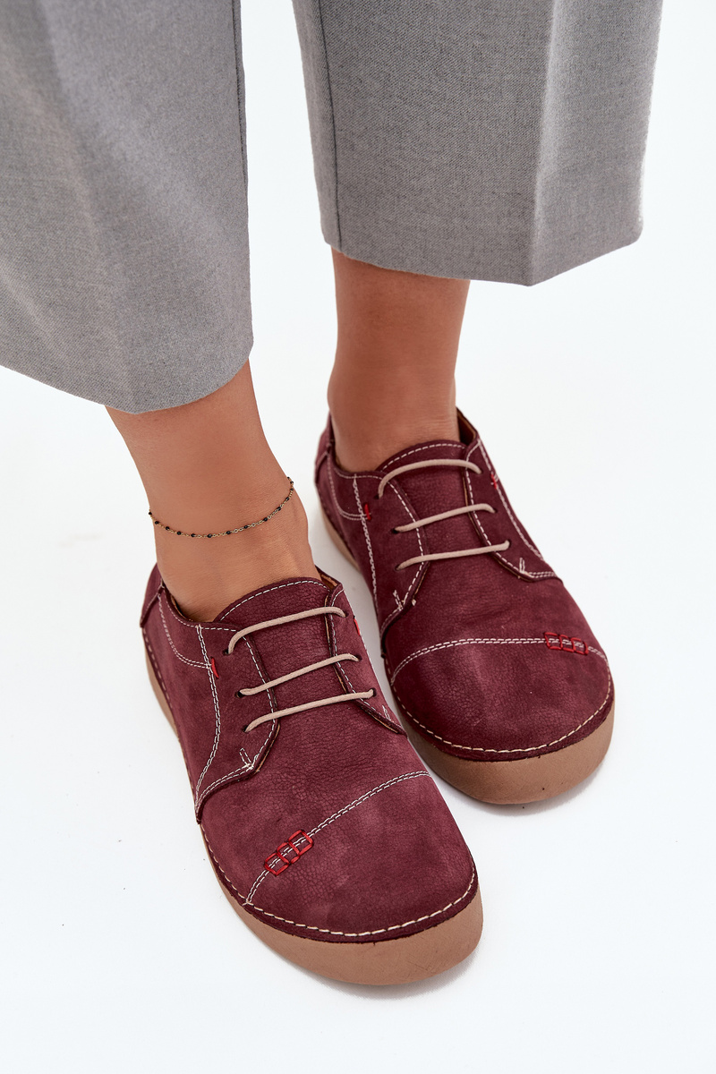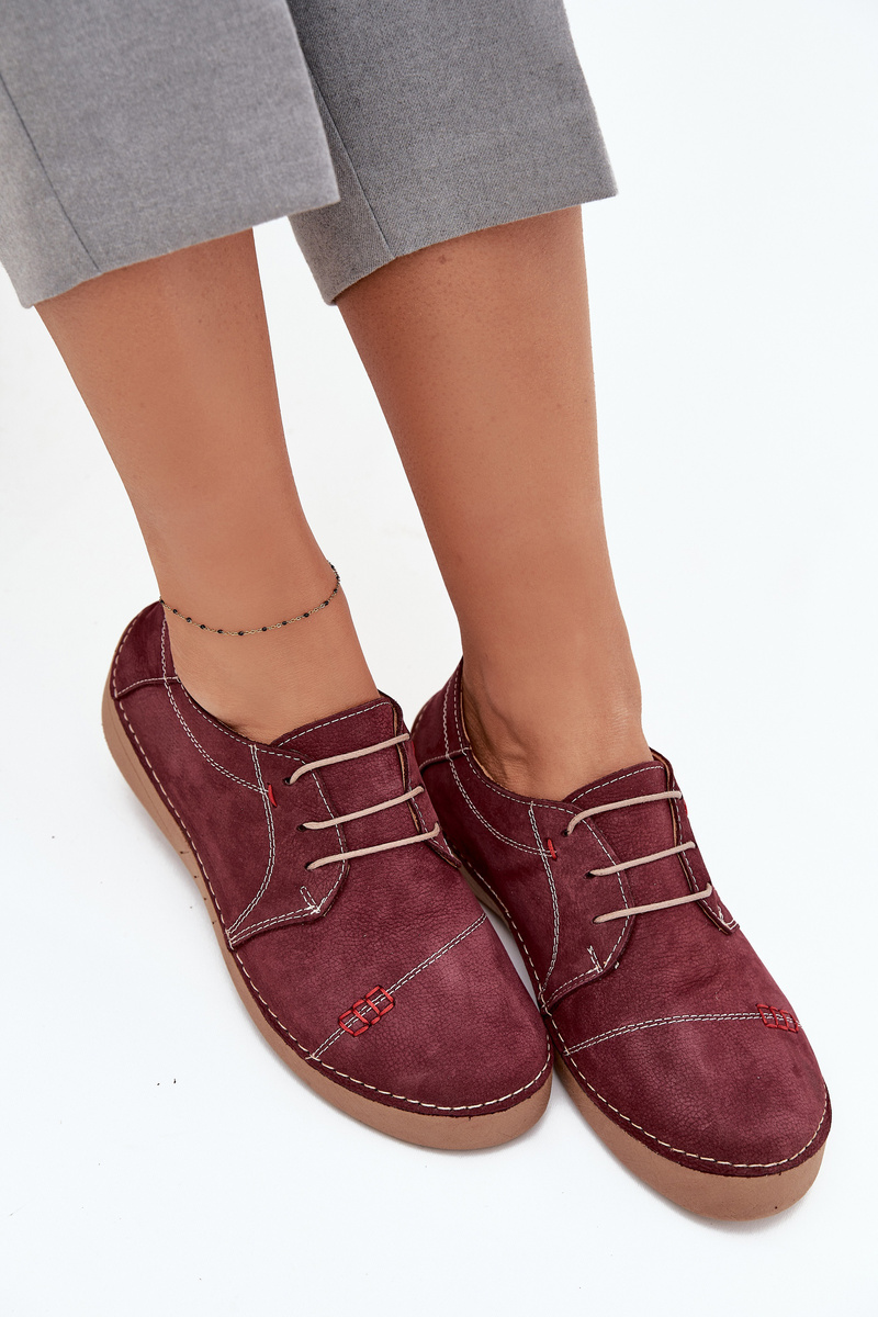 Damskie Półbuty Z Naturalnej Skóry Przeszycia Bordowe Artiker 57C2111