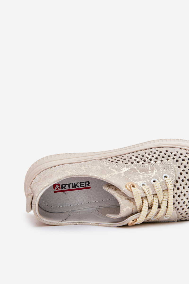 Damskie Półbuty Zamszowe Na Platformie Ażurowe Beżowo-Złote Artiker 56C2108