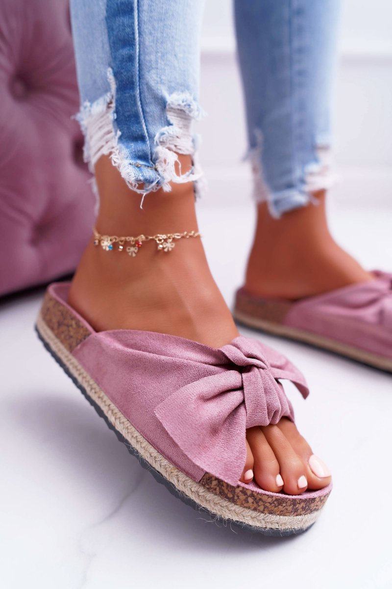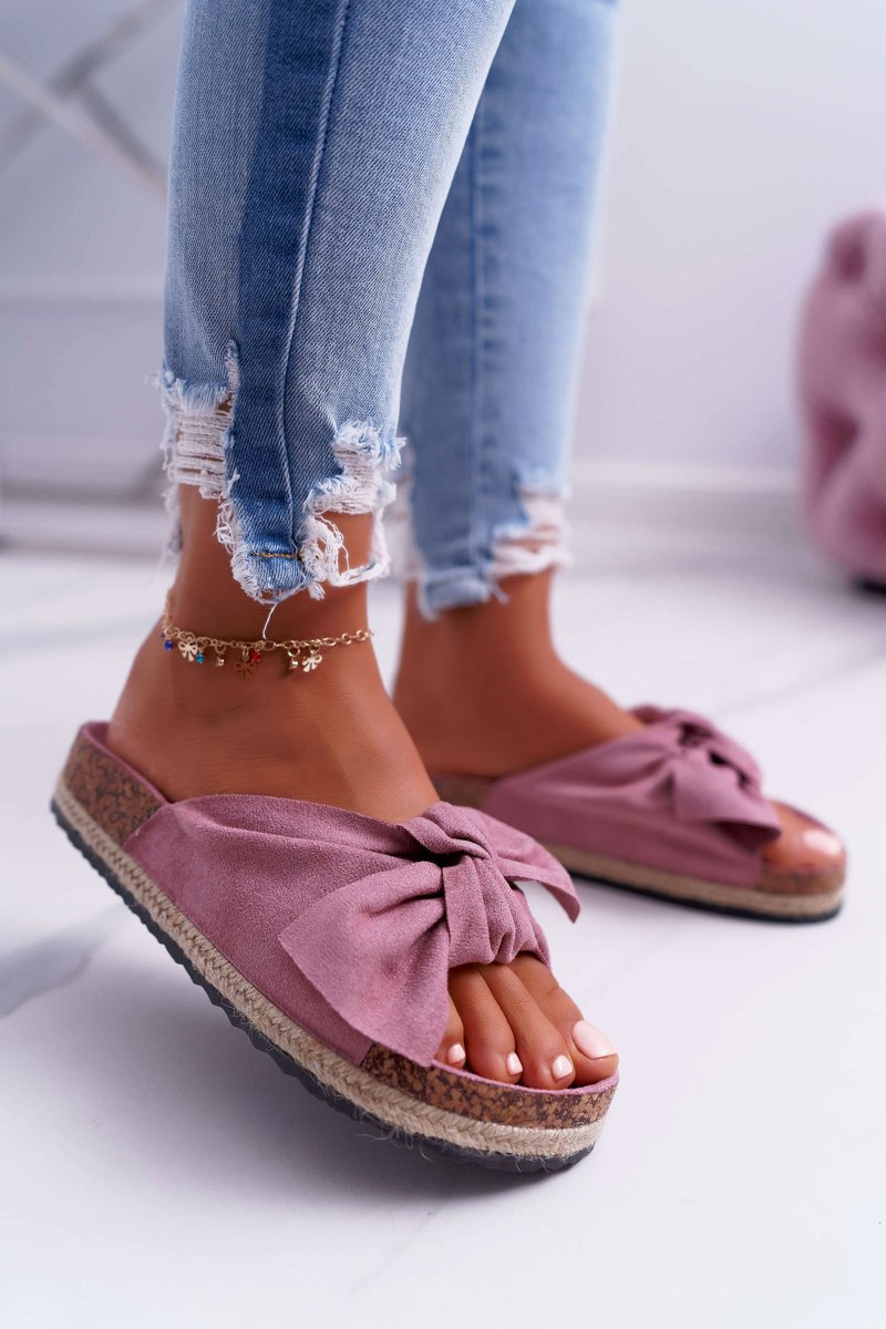 Damskie Różowe Klapki Na Korku Kwiaty Kokarda Misto