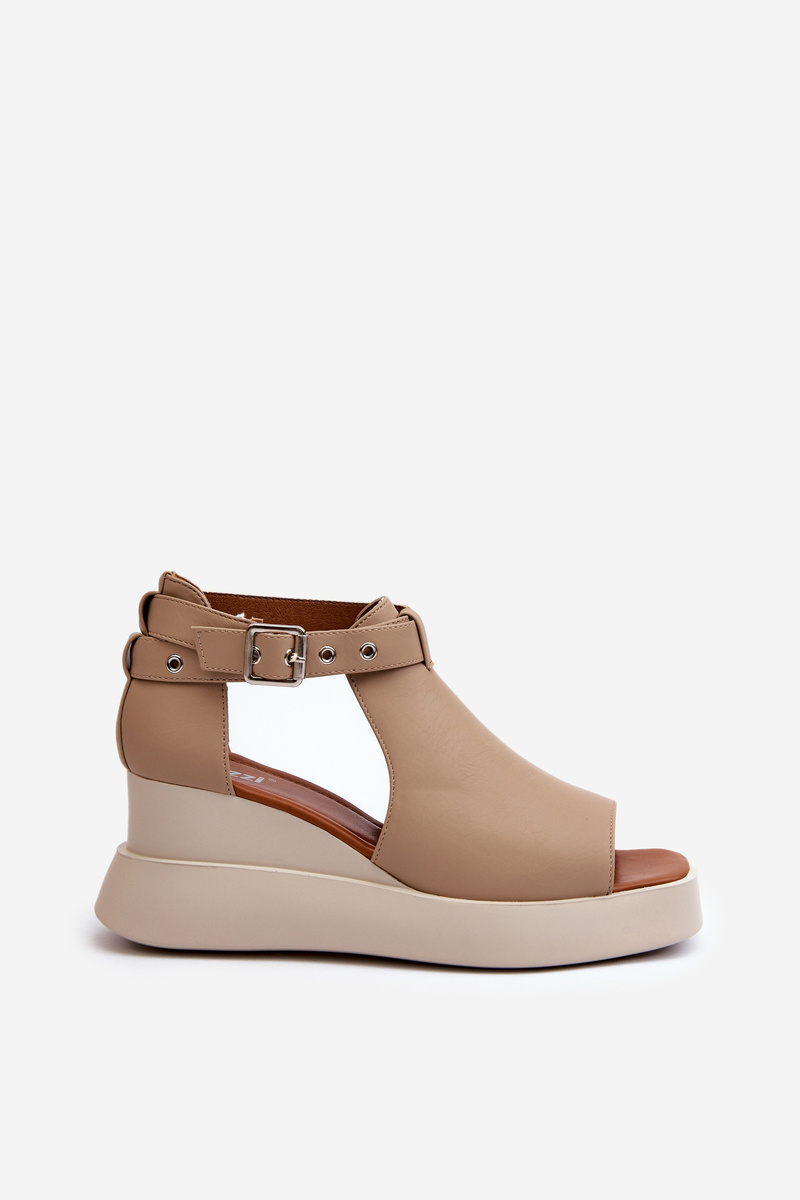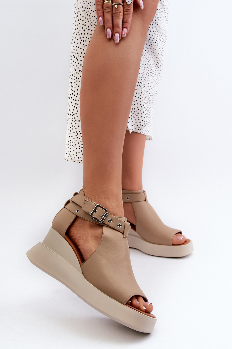 Damskie Sandały Eko Skórzane Na Platformie I Koturnie Beżowe Hloeli