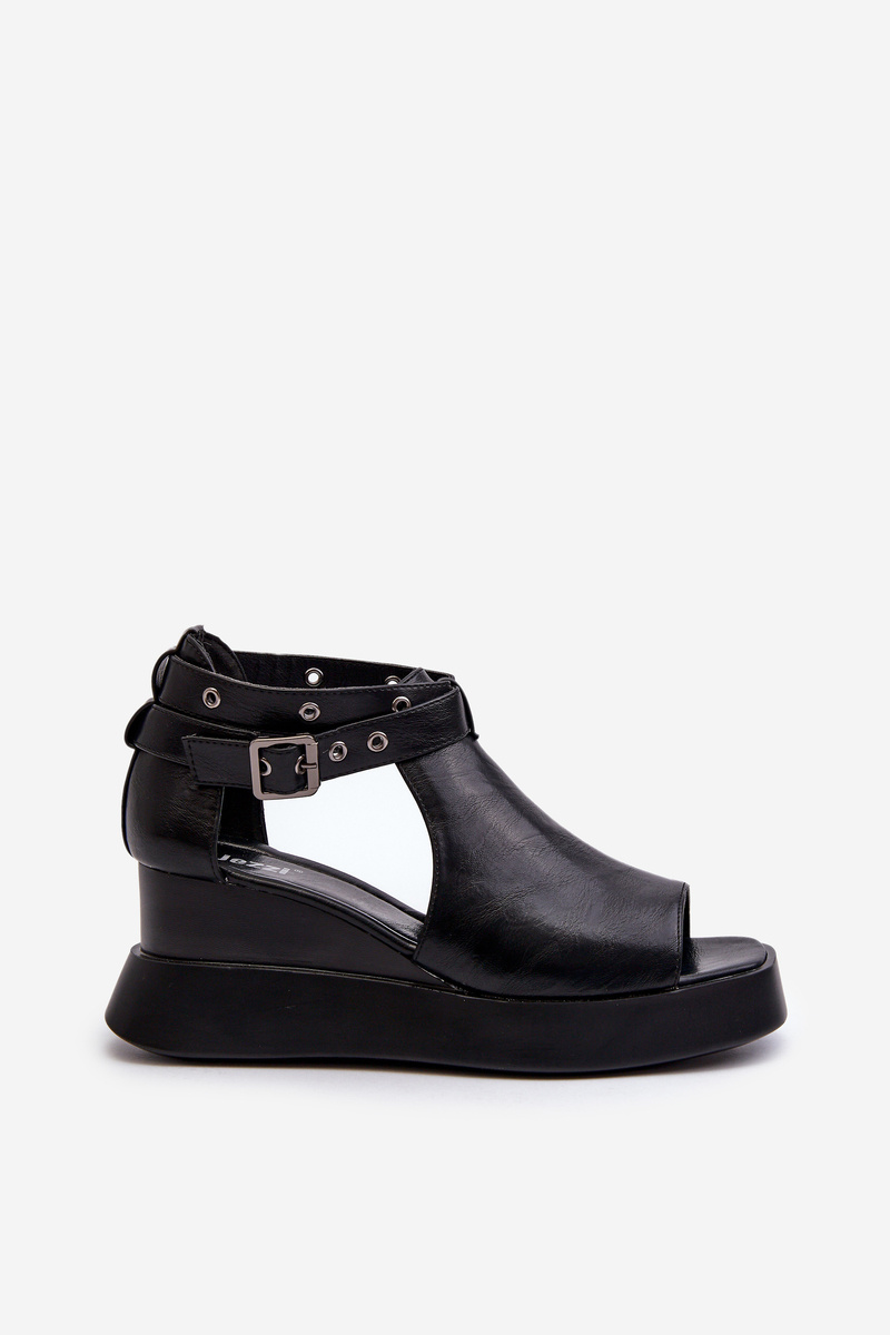 Damskie Sandały Eko Skórzane Na Platformie I Koturnie Czarne Hloeli
