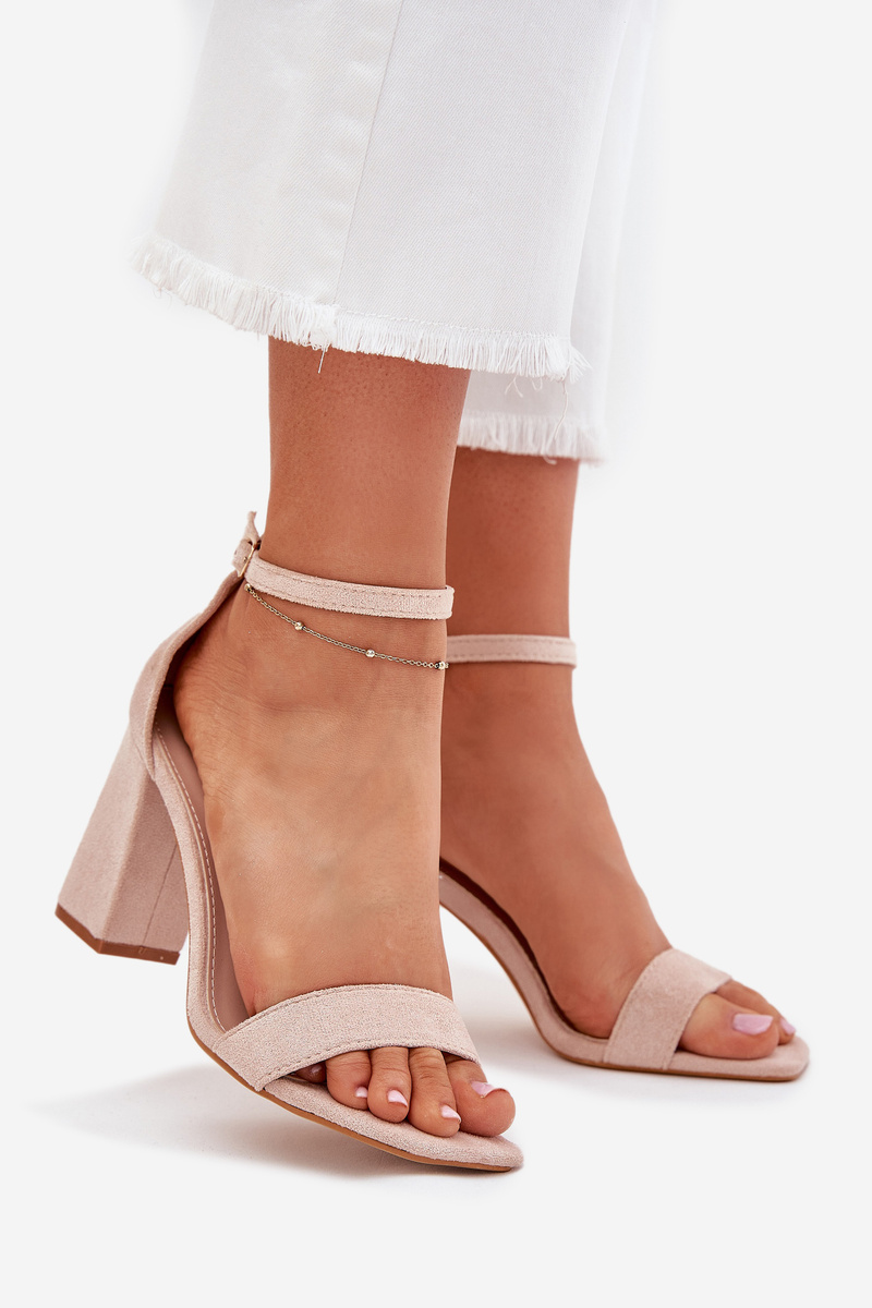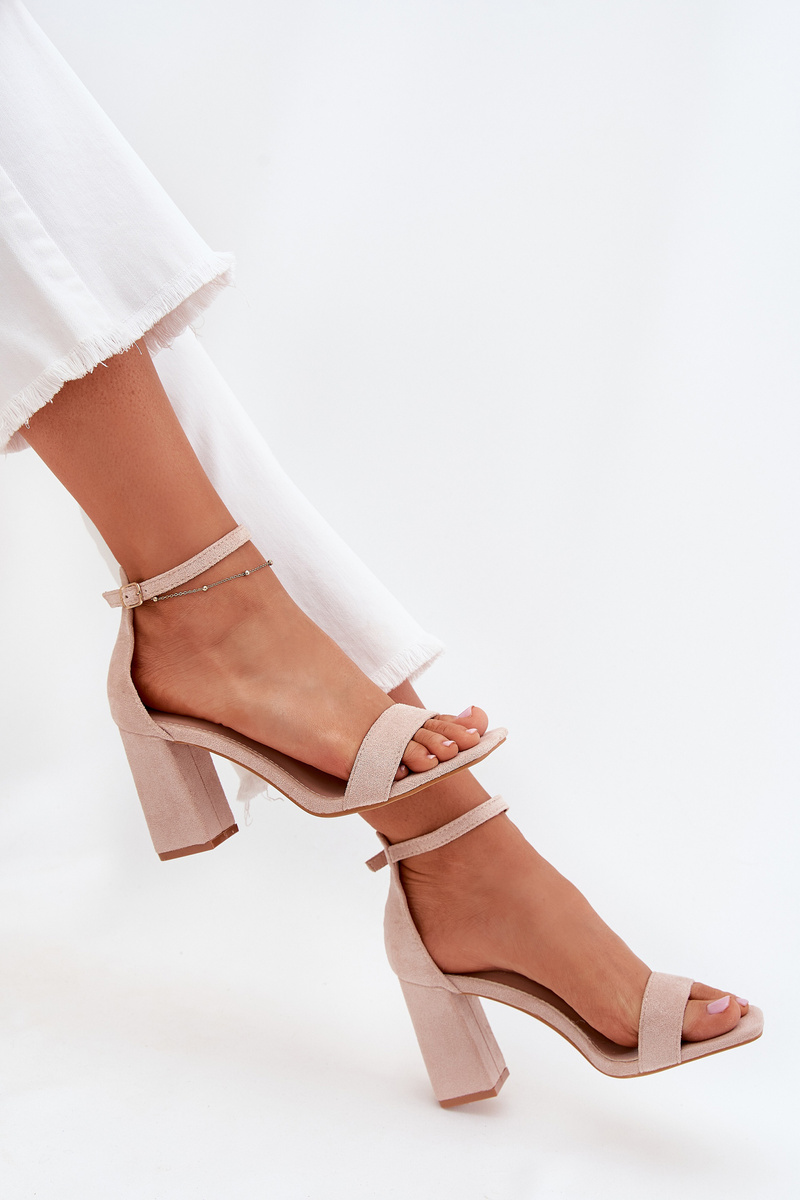 Damskie Sandały Eko Zamszowe Na Słupku Beżowe Elirae