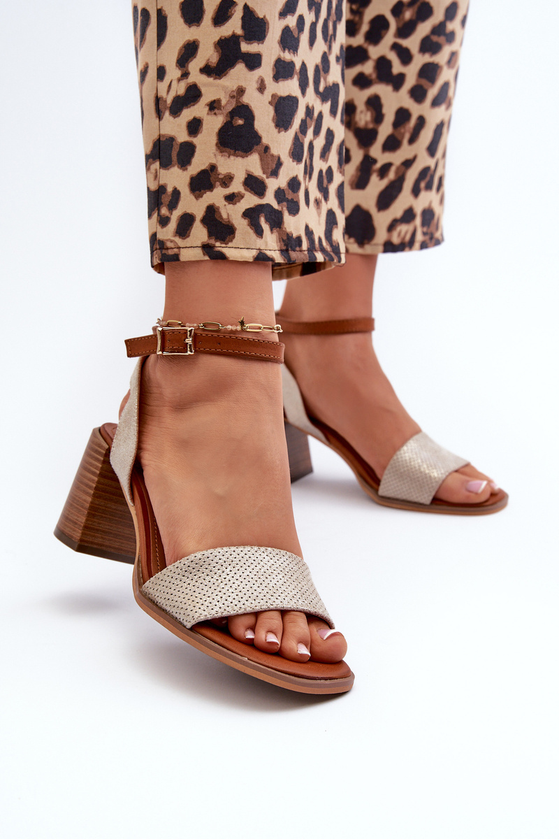 Damskie Sandały Eko Zamszowe Na Słupku Złote Ronvia