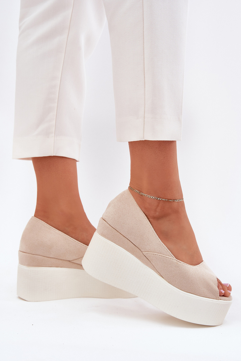Damskie Sandały Koturn Platforma Eko Zamsz Jasnobeżowe Felyra