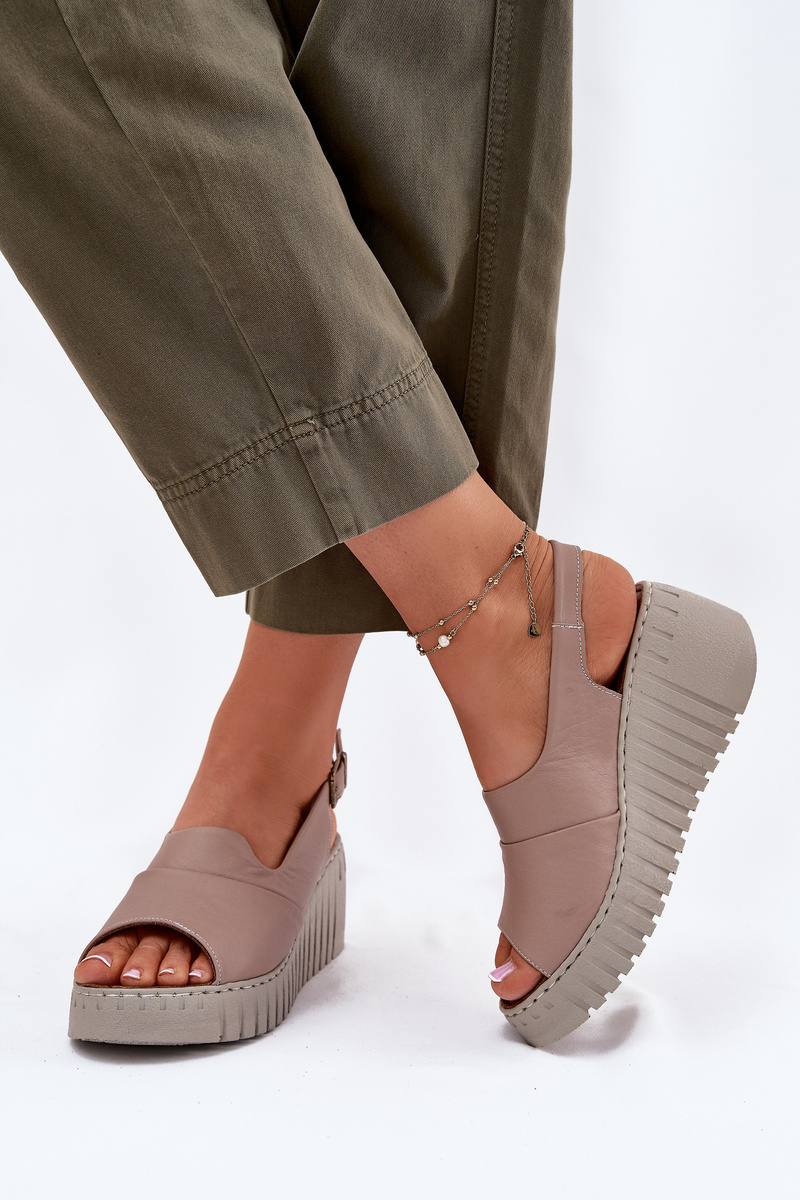 Damskie Sandały Koturn Skóra Naturalna Ciemnobeżowe Artiker 54C0788