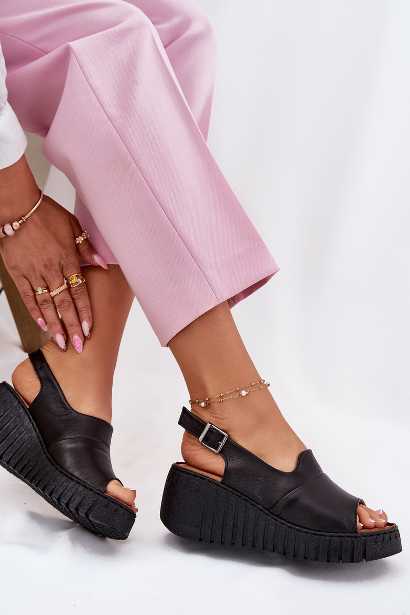 Opinie o Damskie Sandały Koturn Skóra Naturalna Czarne Artiker 54C0791