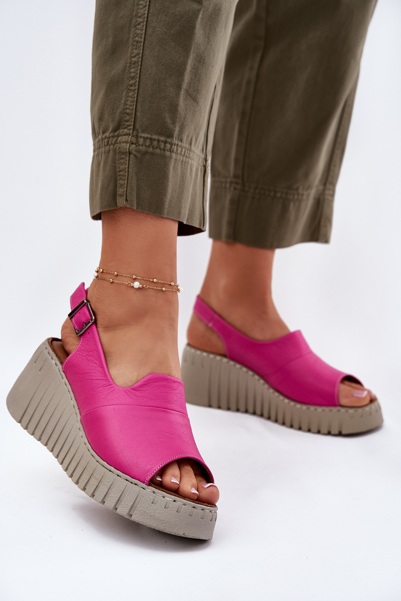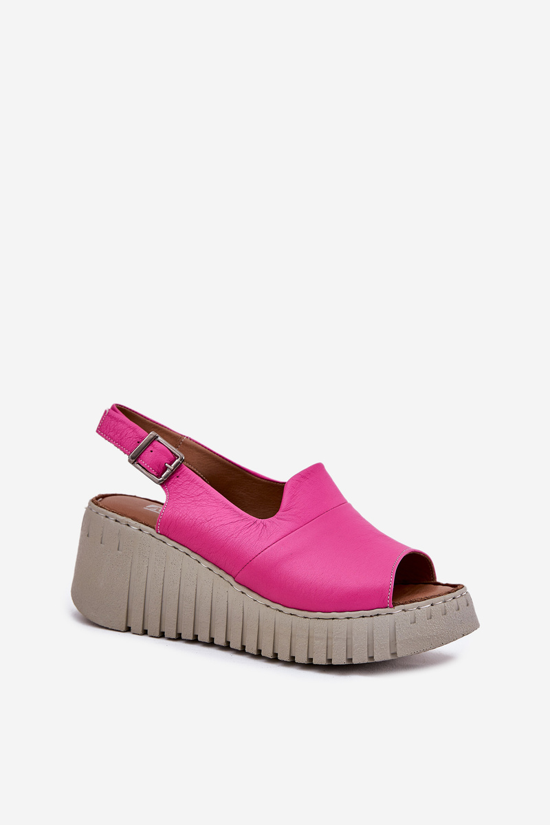 Damskie Sandały Koturn Skóra Naturalna Fuksja Artiker 54C0789