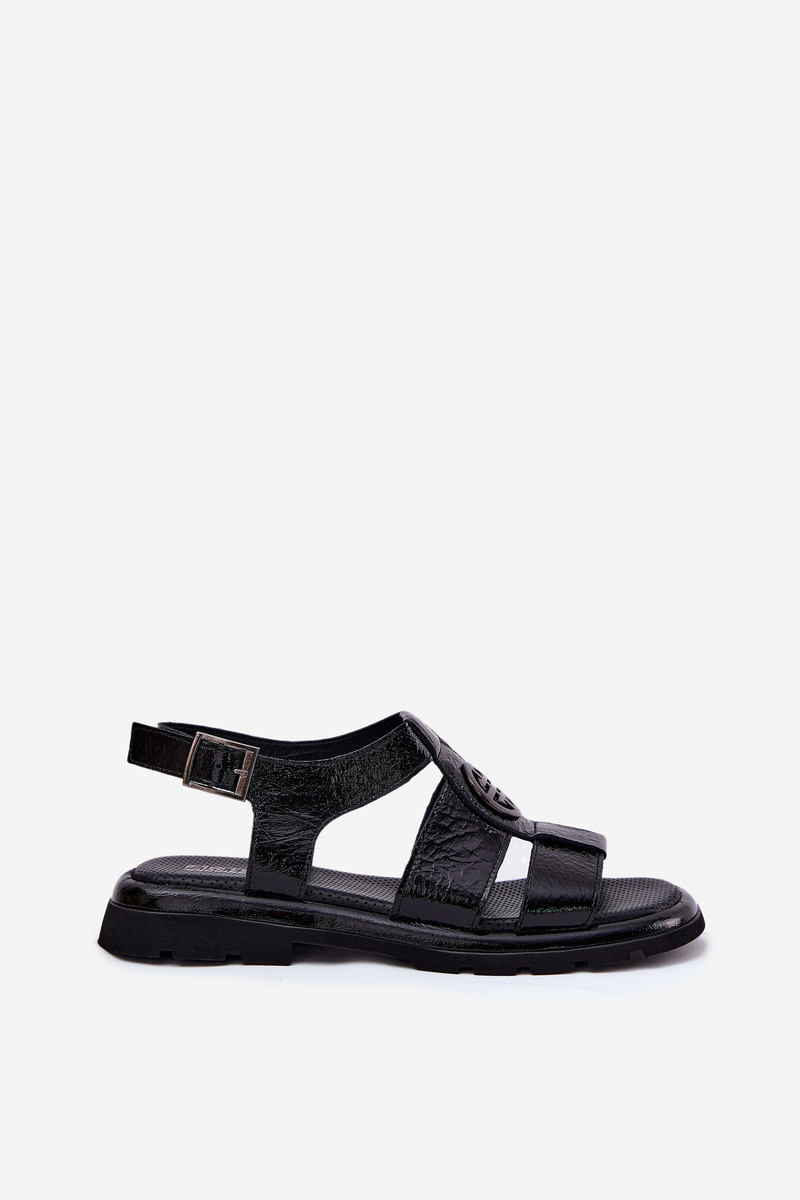 Damskie Sandały Lakierowane Skóra Naturalna Ozdobny Detal Czarne Artiker 56C0691