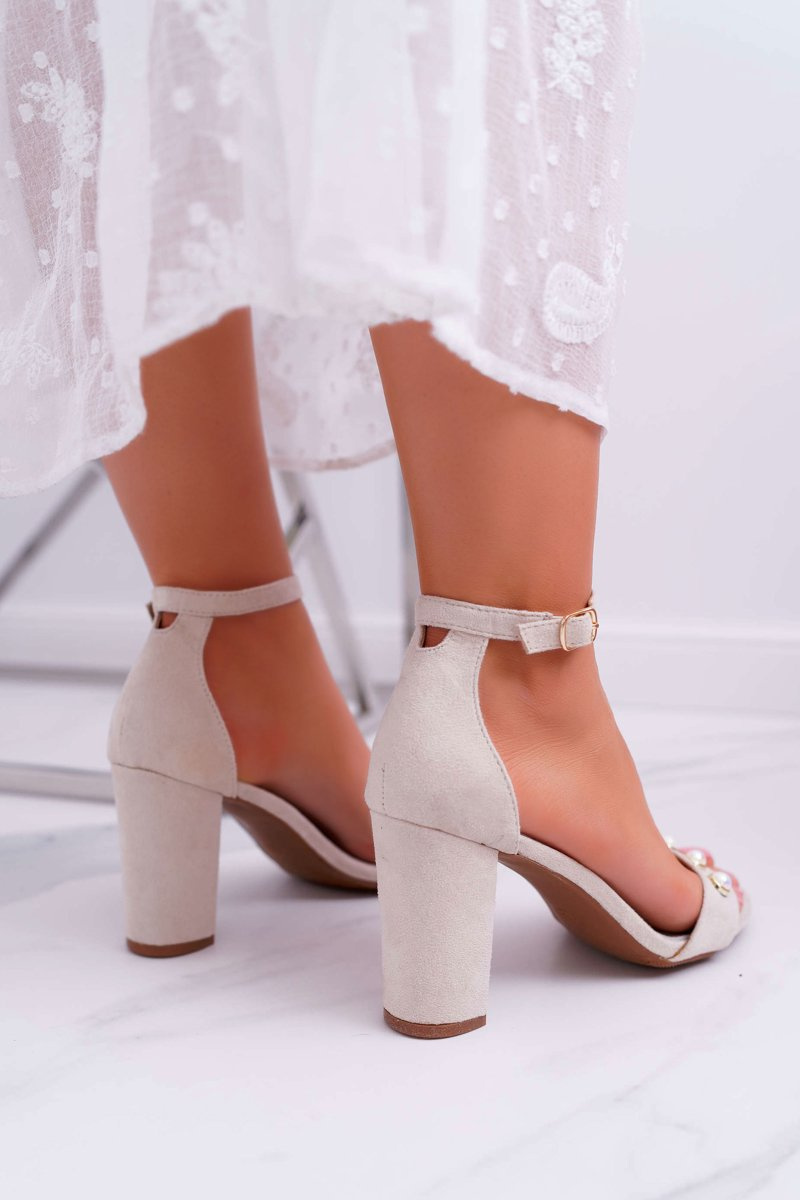Damskie Sandały Na Słupku Z Perełkami Beżowe Renes
