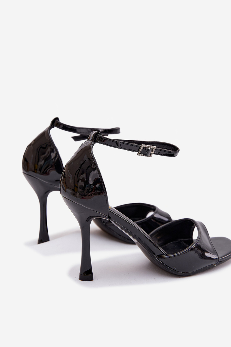 Damskie Sandały Na Szpilce Lakierowane Czarne Revella