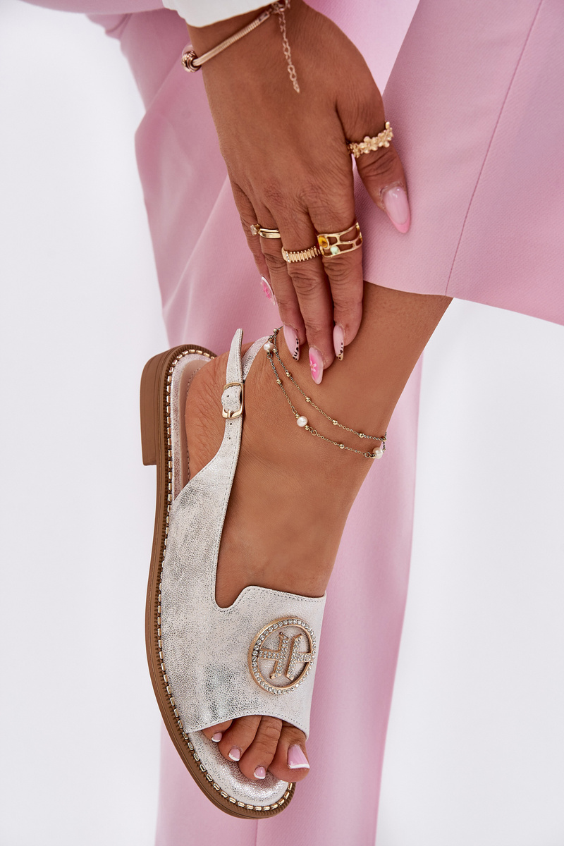 Damskie Sandały Płaskie Z Ozdobą Eko Skóra Srebrne S.Barski KV51-002