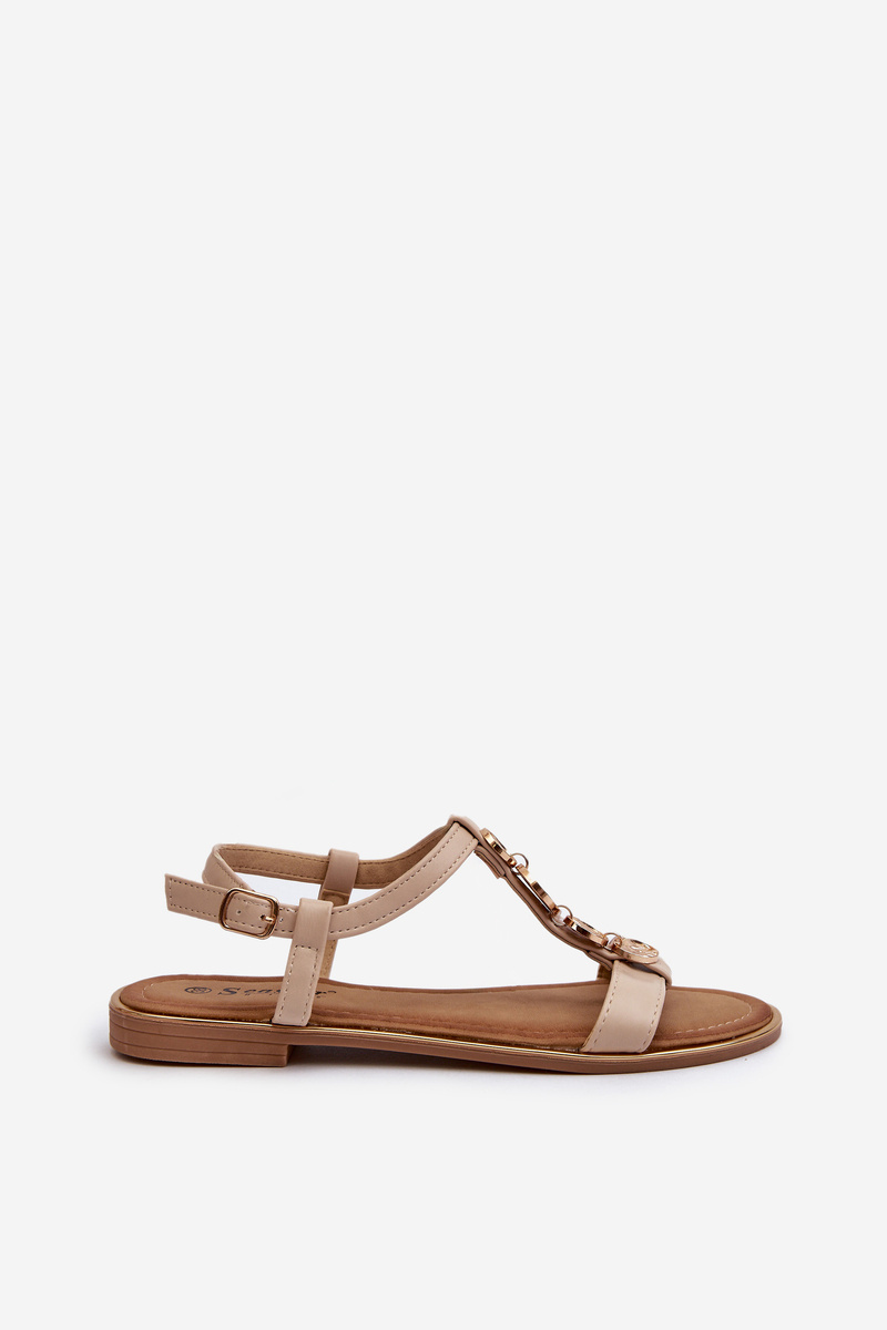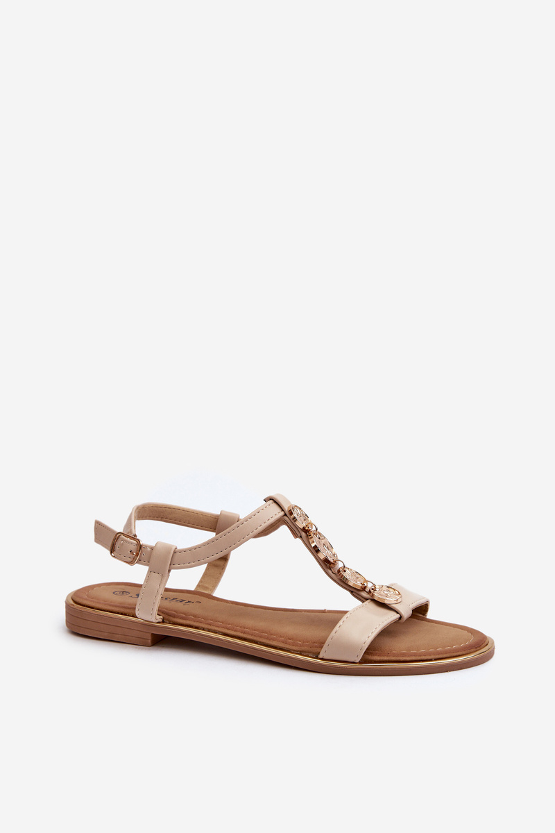 Damskie Sandały Płaskie Z Ozdobami Beżowe Muridia