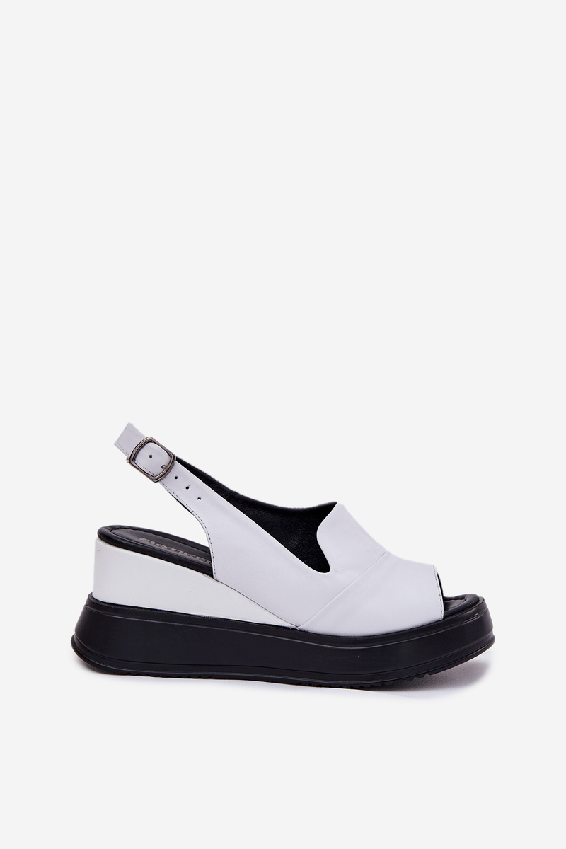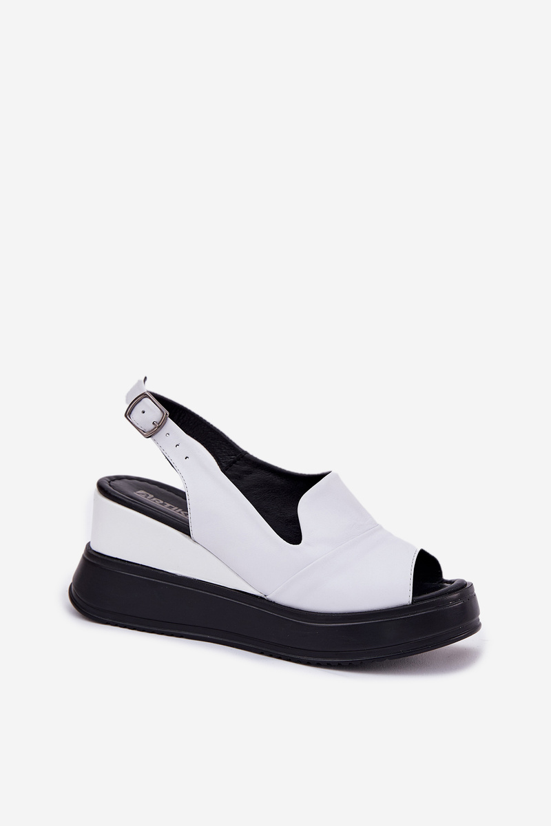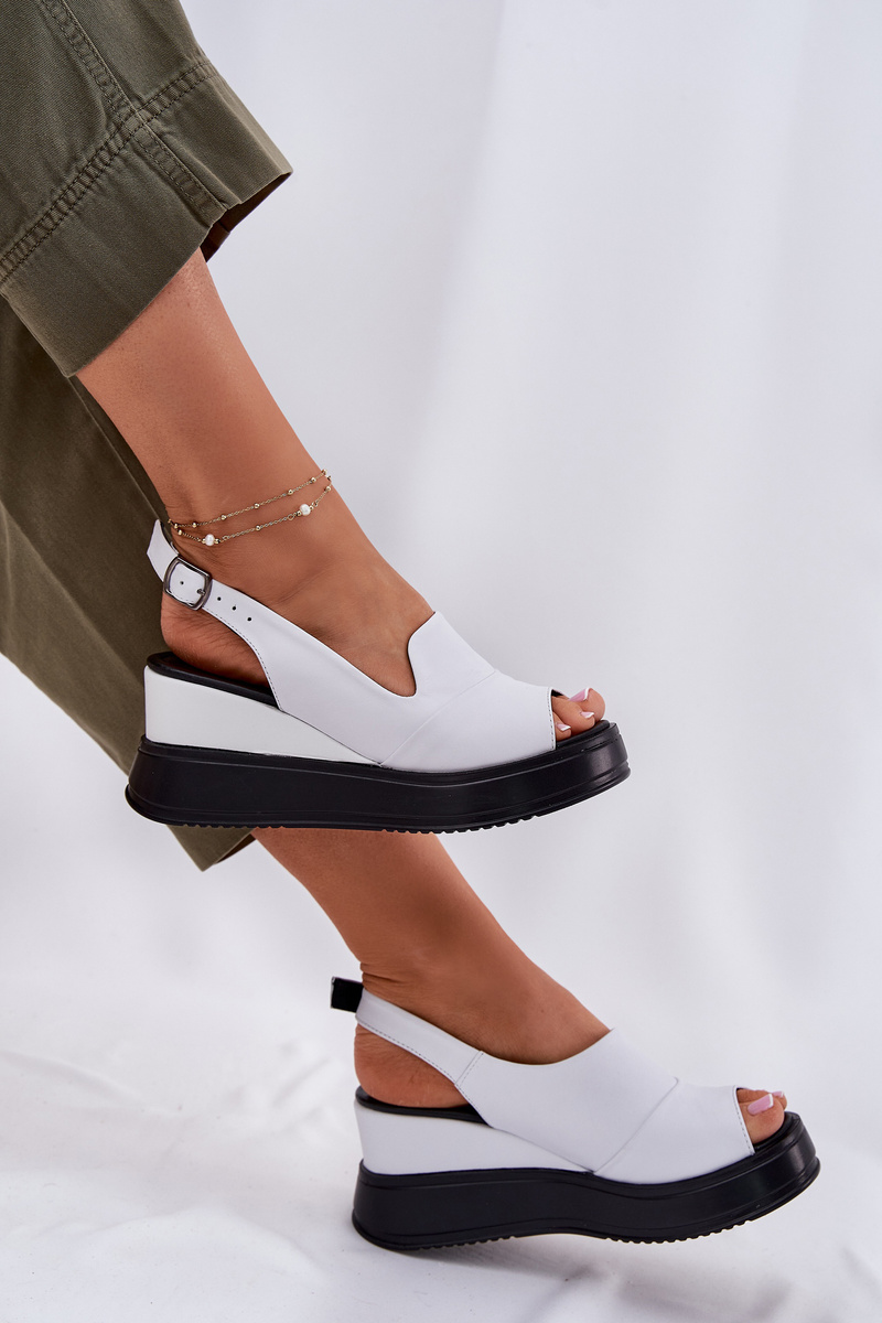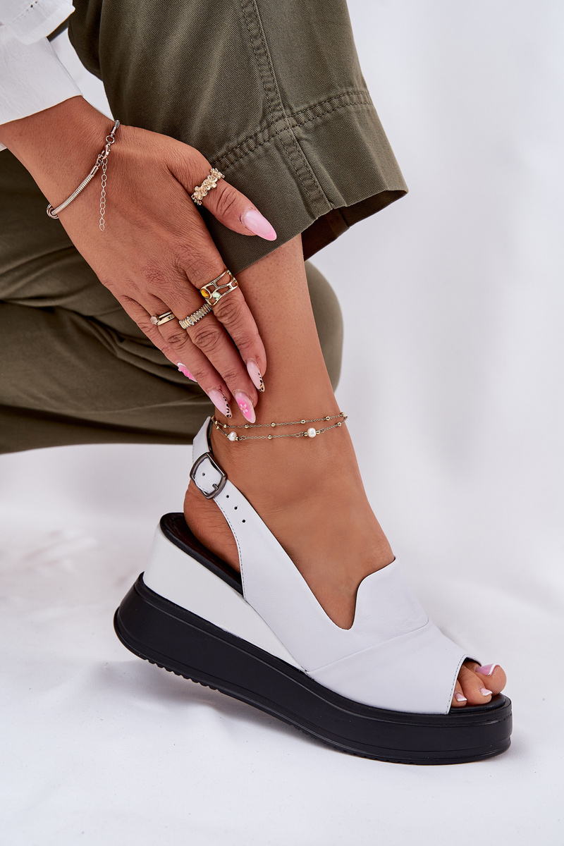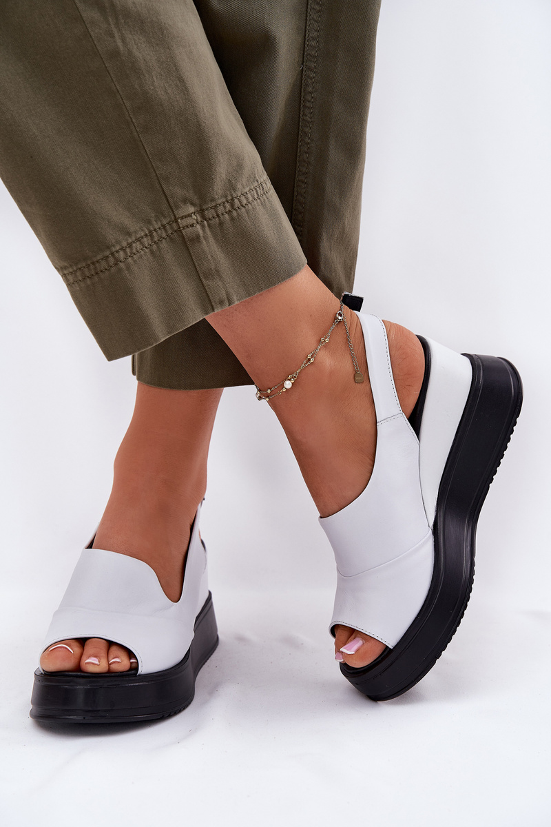 Damskie Sandały Skóra Naturalna Koturn Białe Artiker 52C0483