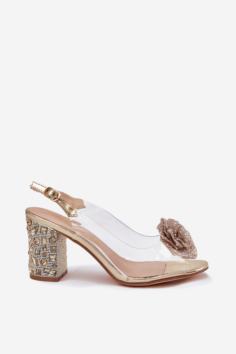 Damskie Sandały Transparentne Słupek Kryształki I Ozdoba Złote D&A MR51-702