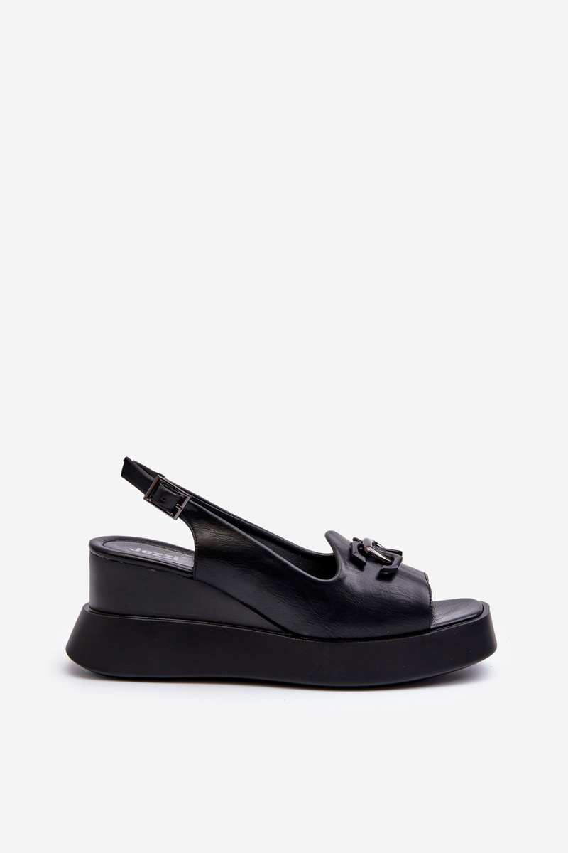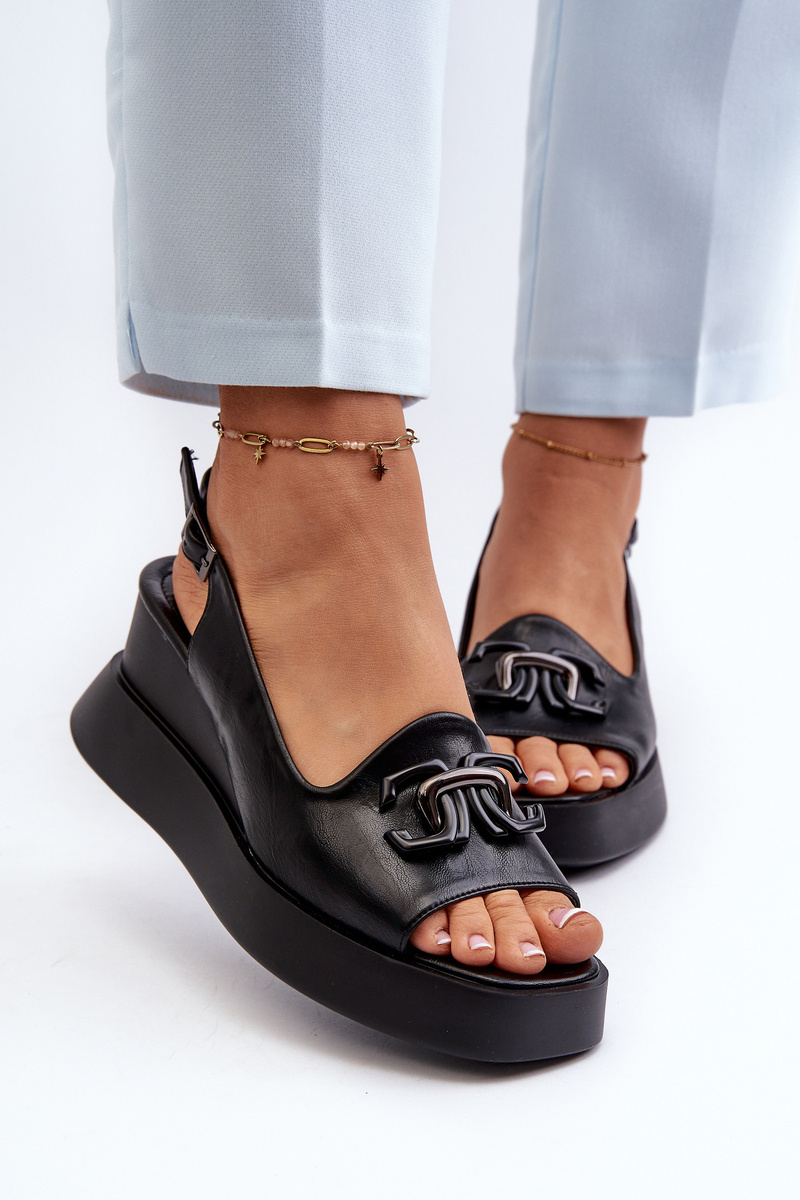 Damskie Sandały Z Ozodbą Na Koturnie Platformie Czarne Janesca