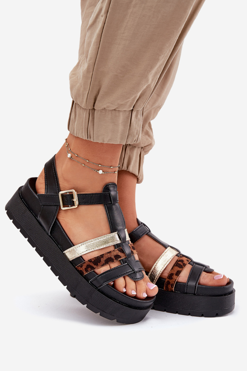 Damskie Sandały Z Paseczkami Platforma Czarne Gallari