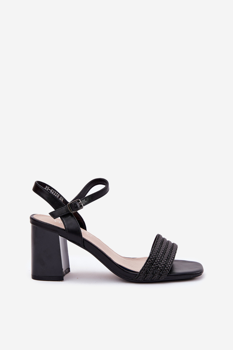 Damskie Sandały Z Plecionką I Cyrkoniami Obcas Słupek Czarne Vinceza 62228