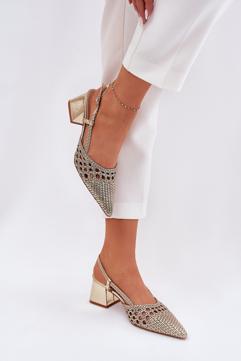 Damskie Sandały Z Plecionki Na Obcasie Złote Resterri