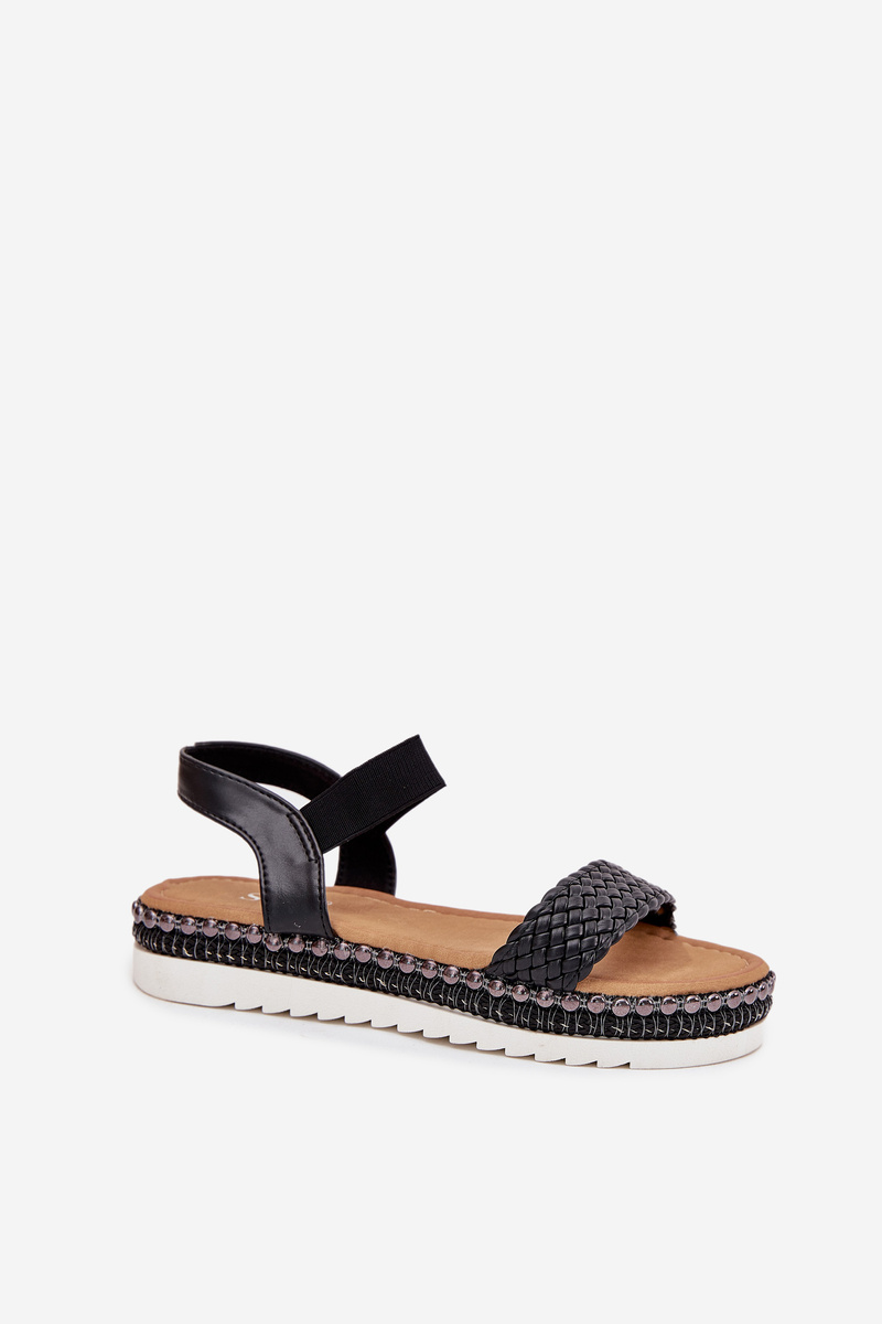 Damskie Sandały Zdobiona Platforma Plecionka Czarne Velara