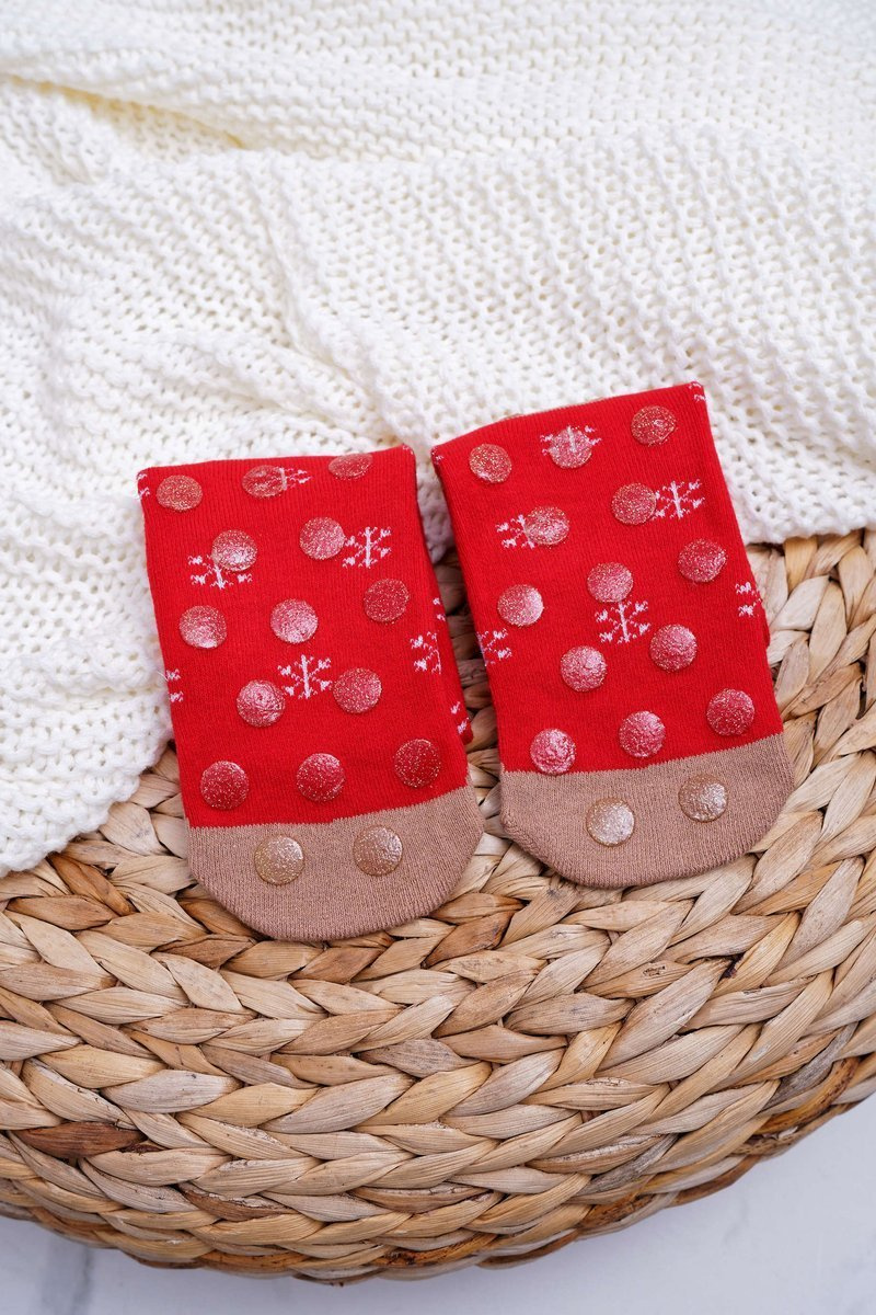 Damskie Skarpetki Świąteczne Antypoślizgowe Czerwone Z Reniferem