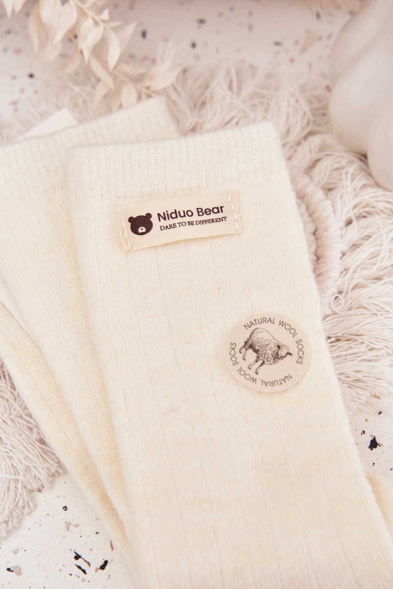 Damskie Skarpetki Wełniane Ciepłe Z Naszywką Ecru