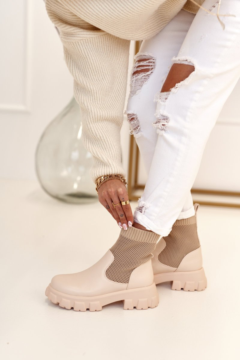 Damskie Skarpetkowe Botki Workery Beżowe Stormy