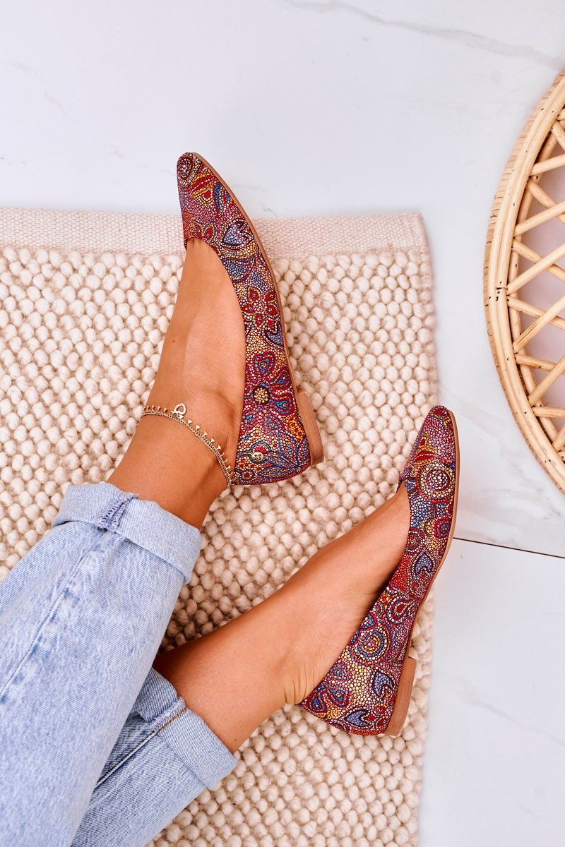 Damskie Skórzane Baleriny Maciejka Czerwone W Kwiaty 04100-38