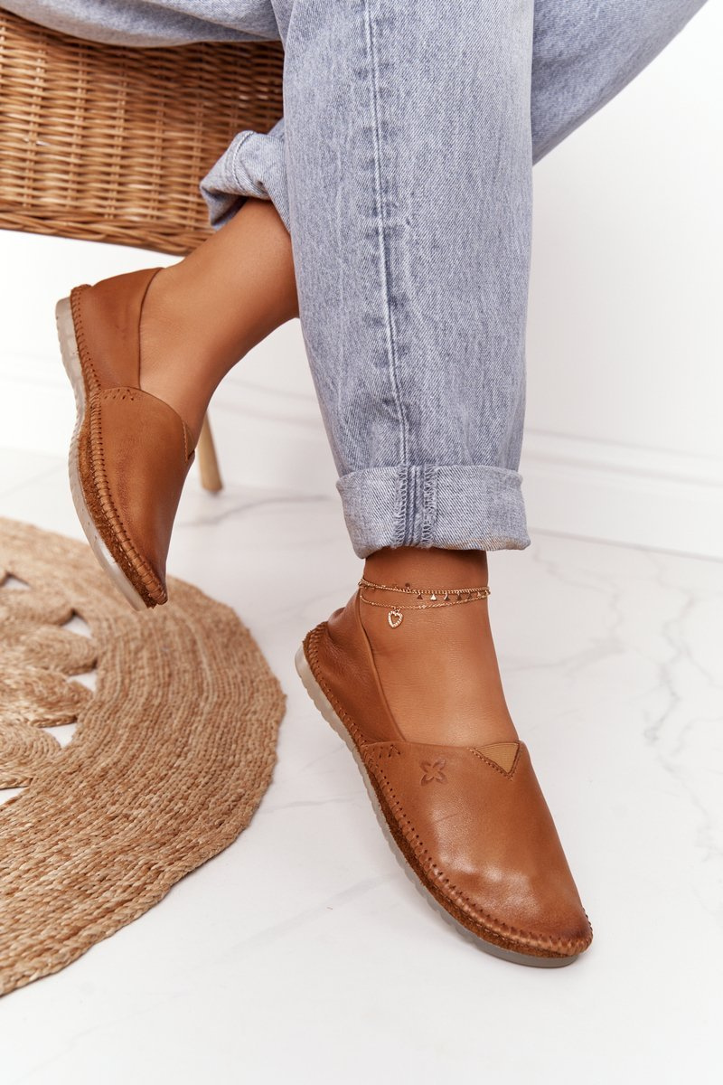 Damskie Skórzane Baleriny Maciejka Rude 01930-52