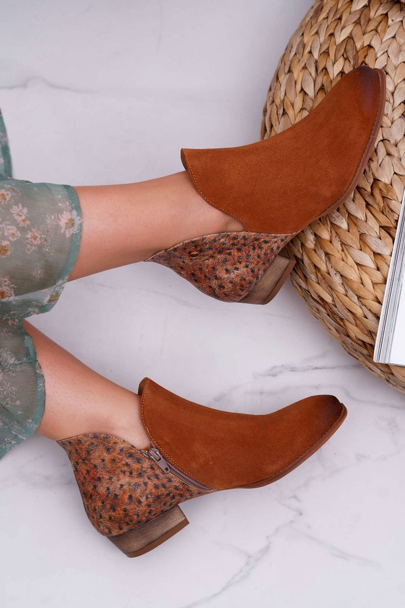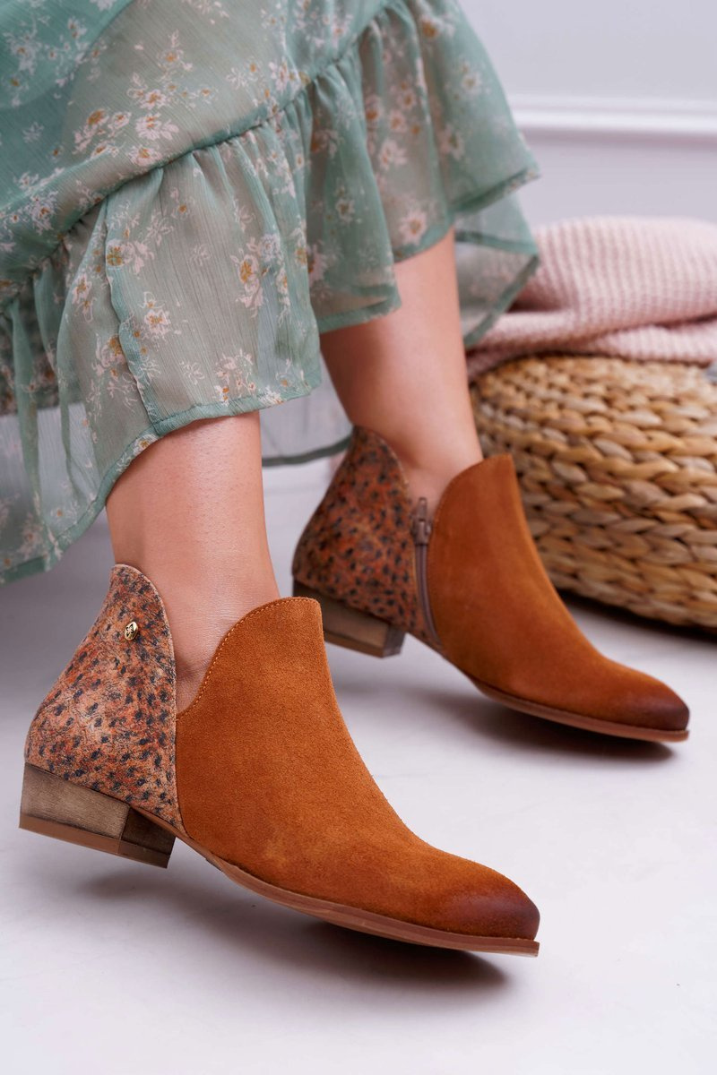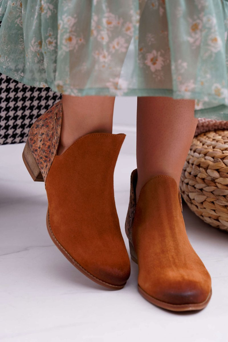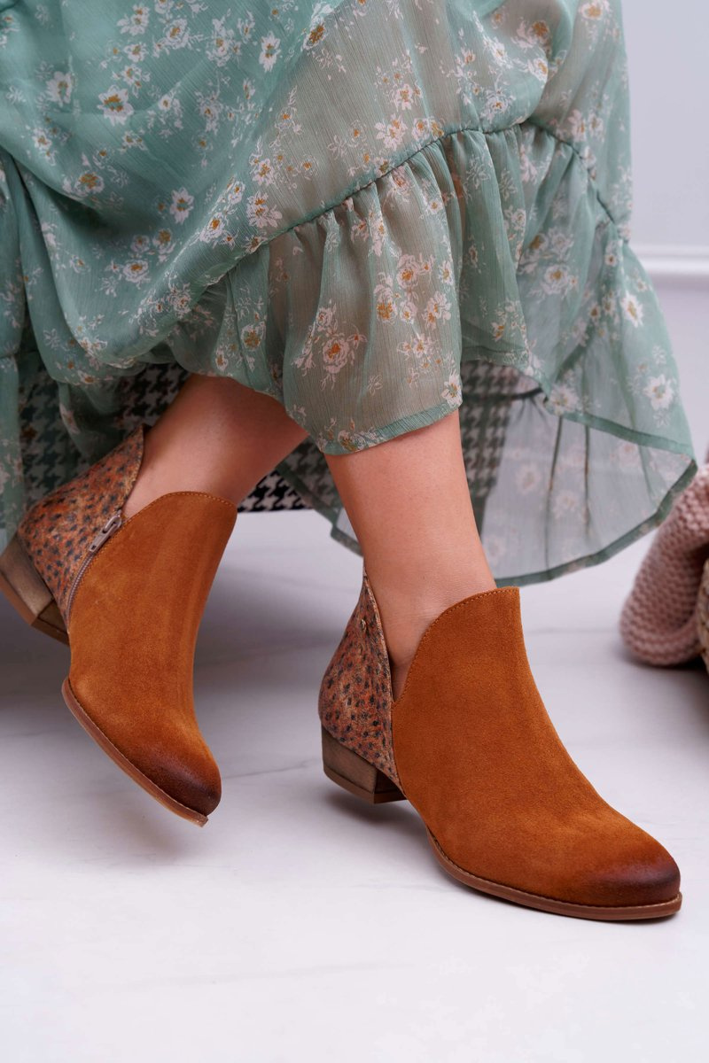 Damskie Skórzane Botki Maciejka Rude 04091-49