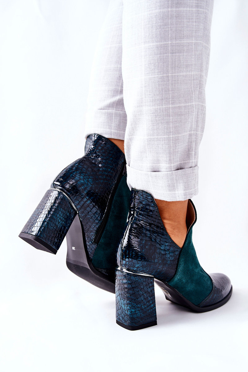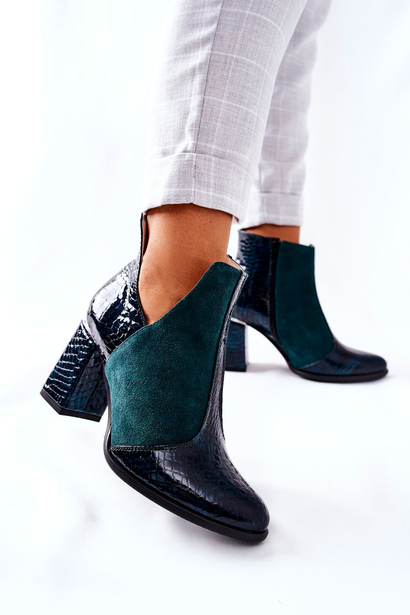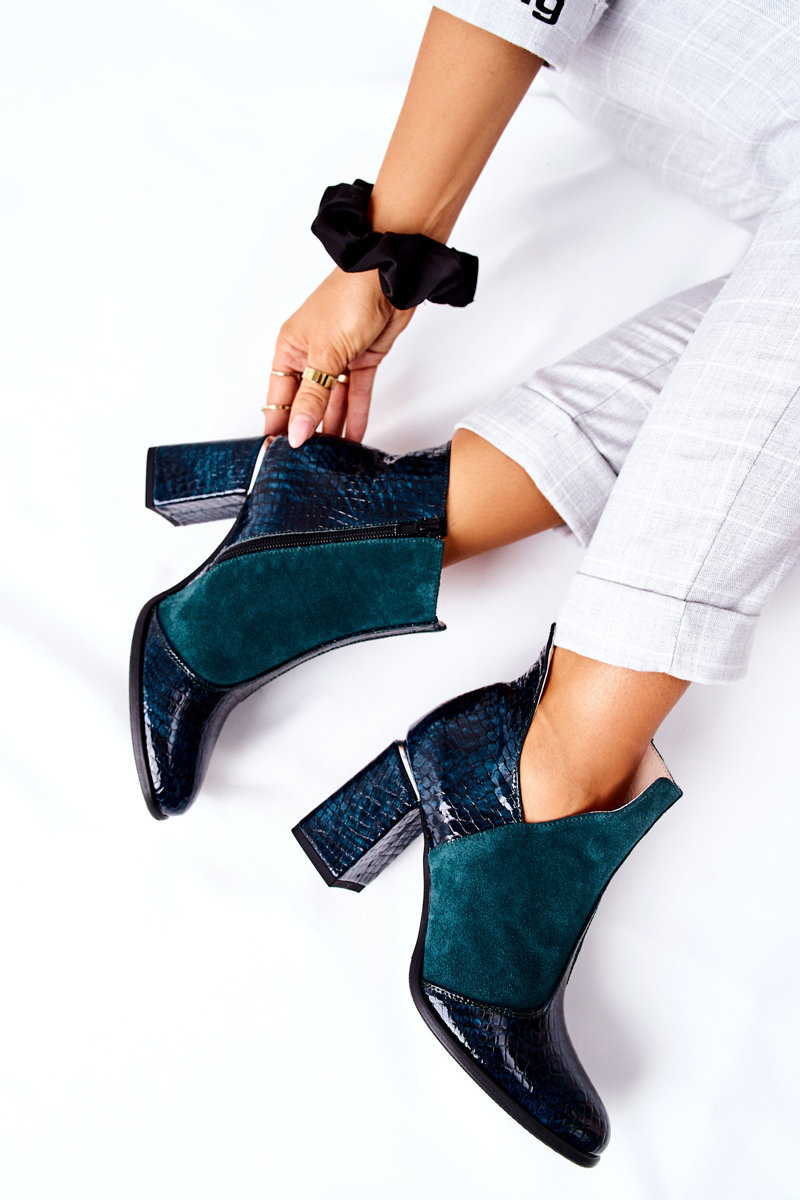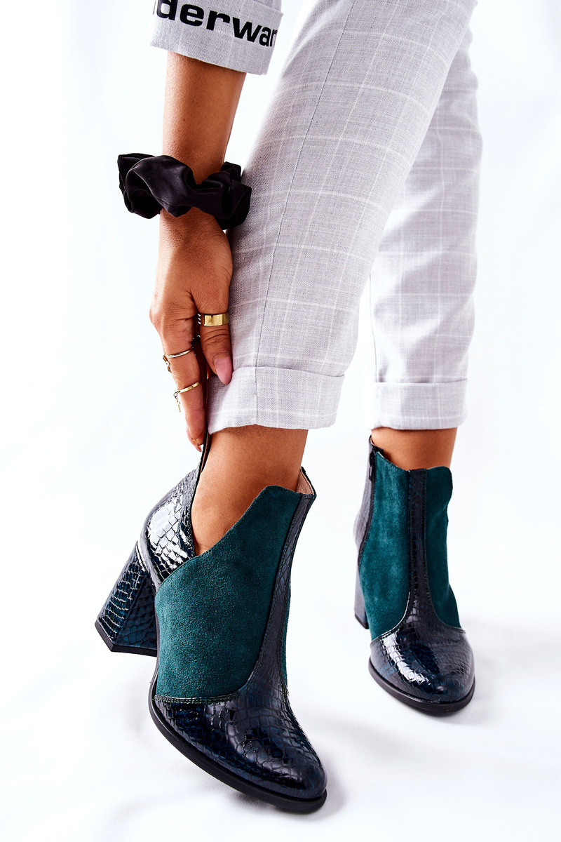 Damskie Skórzane Botki Na Słupku Zielone I Wish