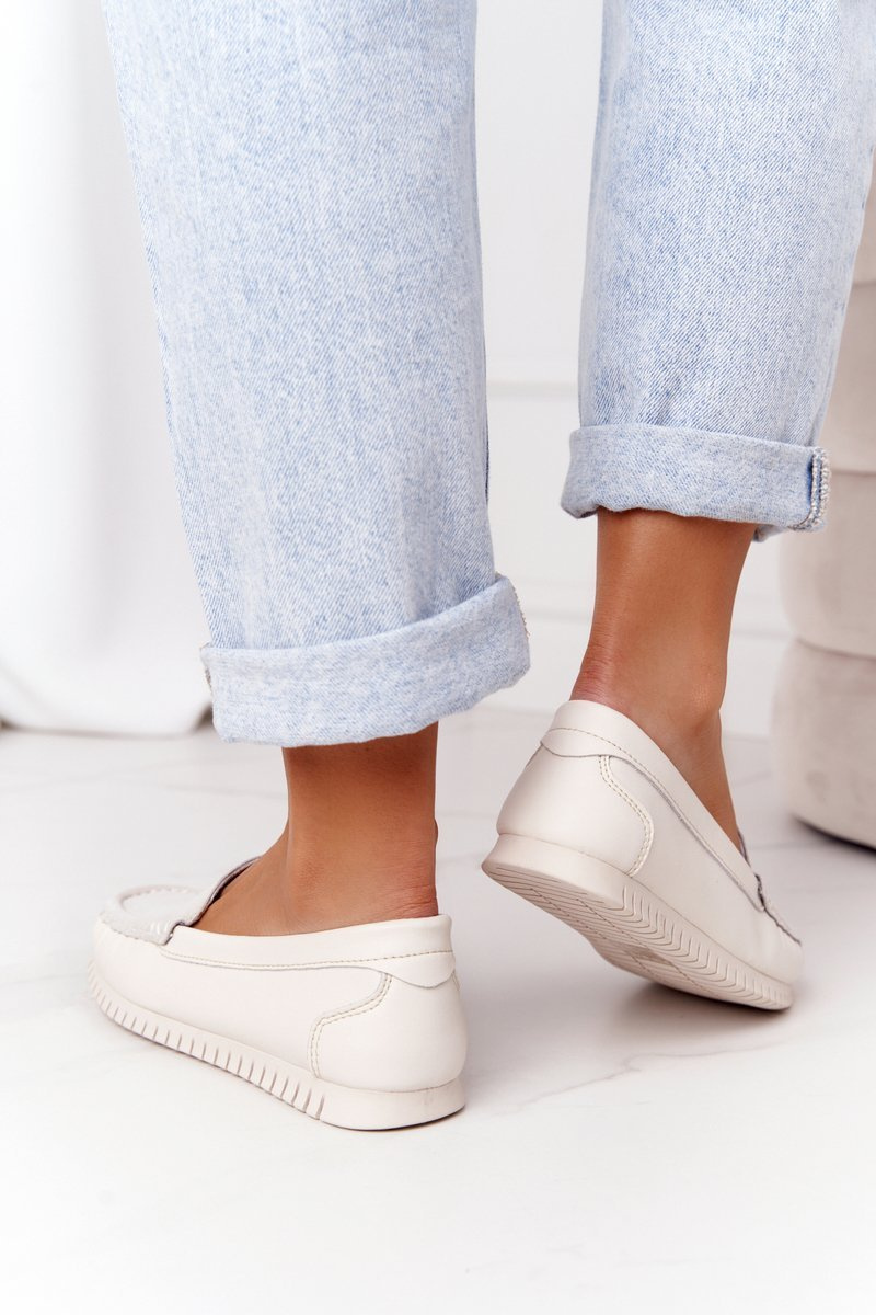 Damskie Skórzane Mokasyny S.Barski 97630 Ecru