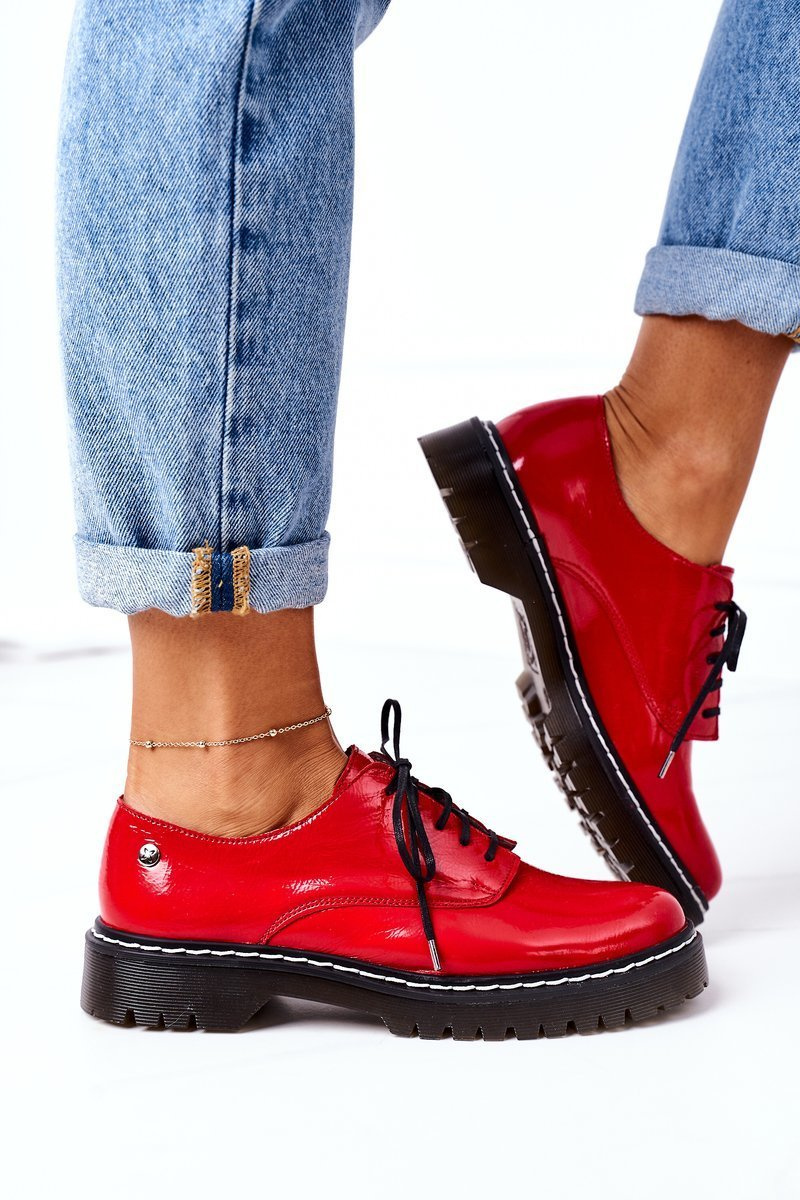 Damskie Skórzane Półbuty Oxfordy Maciejka 04087-08 Czerwone