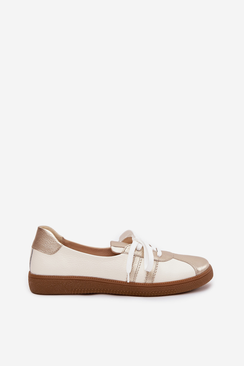 Damskie Skórzane Półbuty Typu Barefoot Biało-Złote Zazoo N1341
