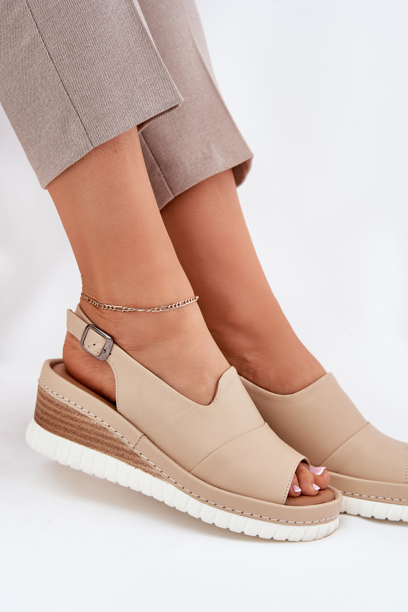 Damskie Skórzane Sandały Na Koturnie Beżowe Artiker 56C0919