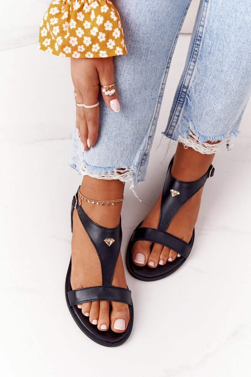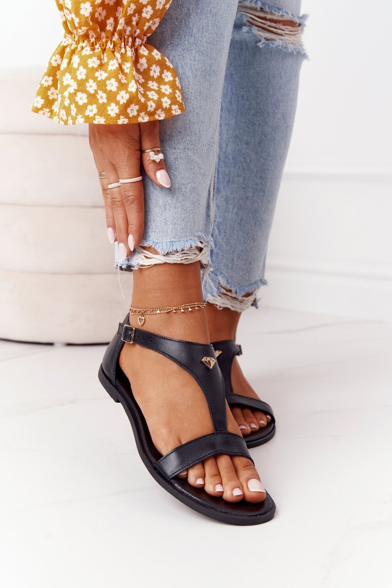 Damskie Skórzane Sandały Nicole 2648 Czarne