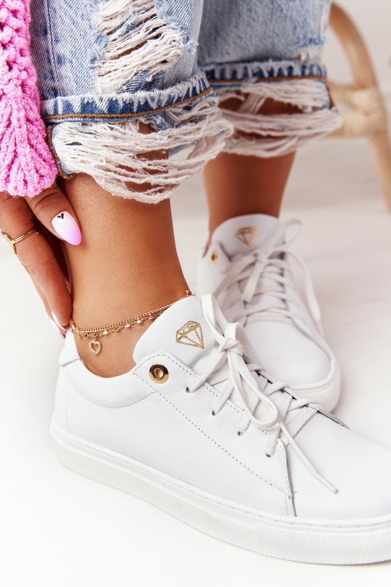 Damskie Skórzane Tenisówki Białe Nicole 2640