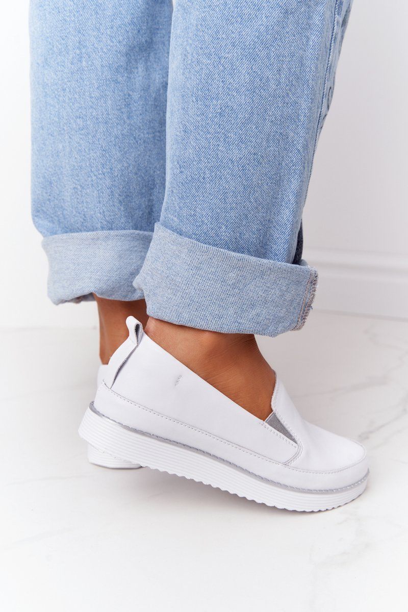 Damskie Skórzane Tenisówki Slip-On S.Barski Białe