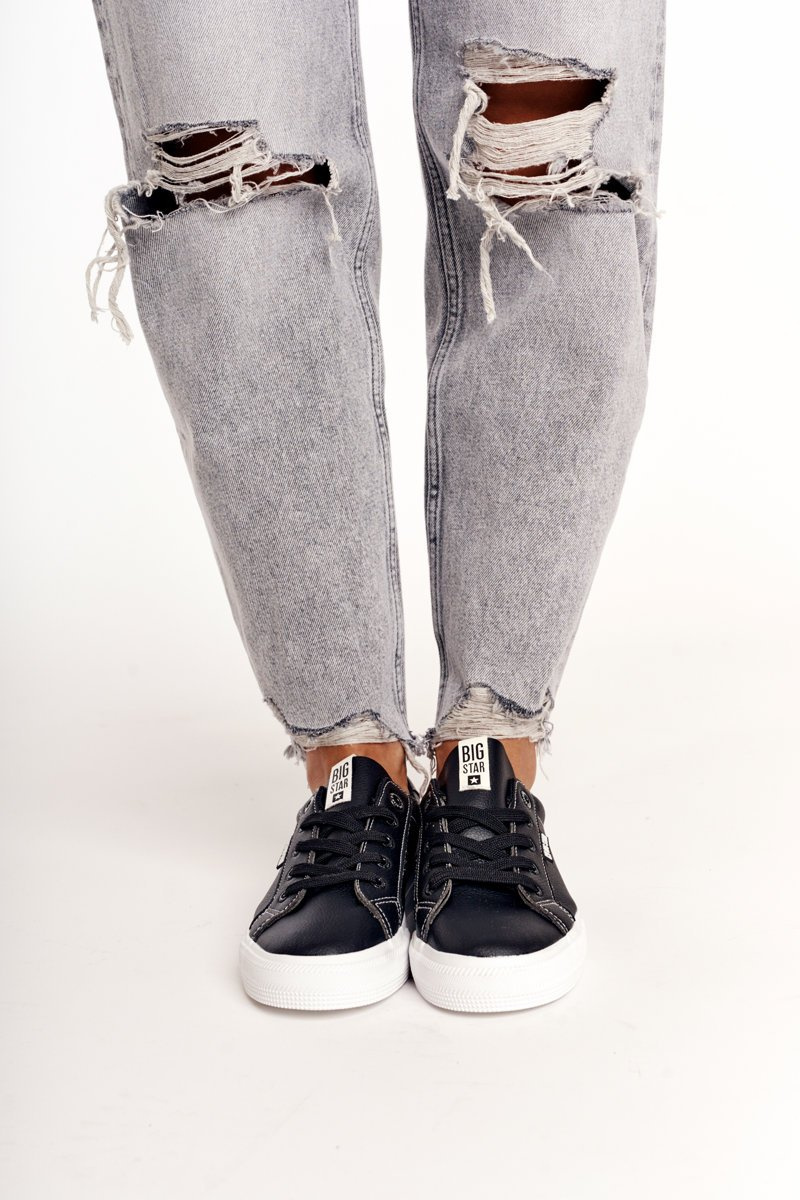 Damskie Skórzane Tenisówki Z Napisem BIG STAR EE274315 Czarne