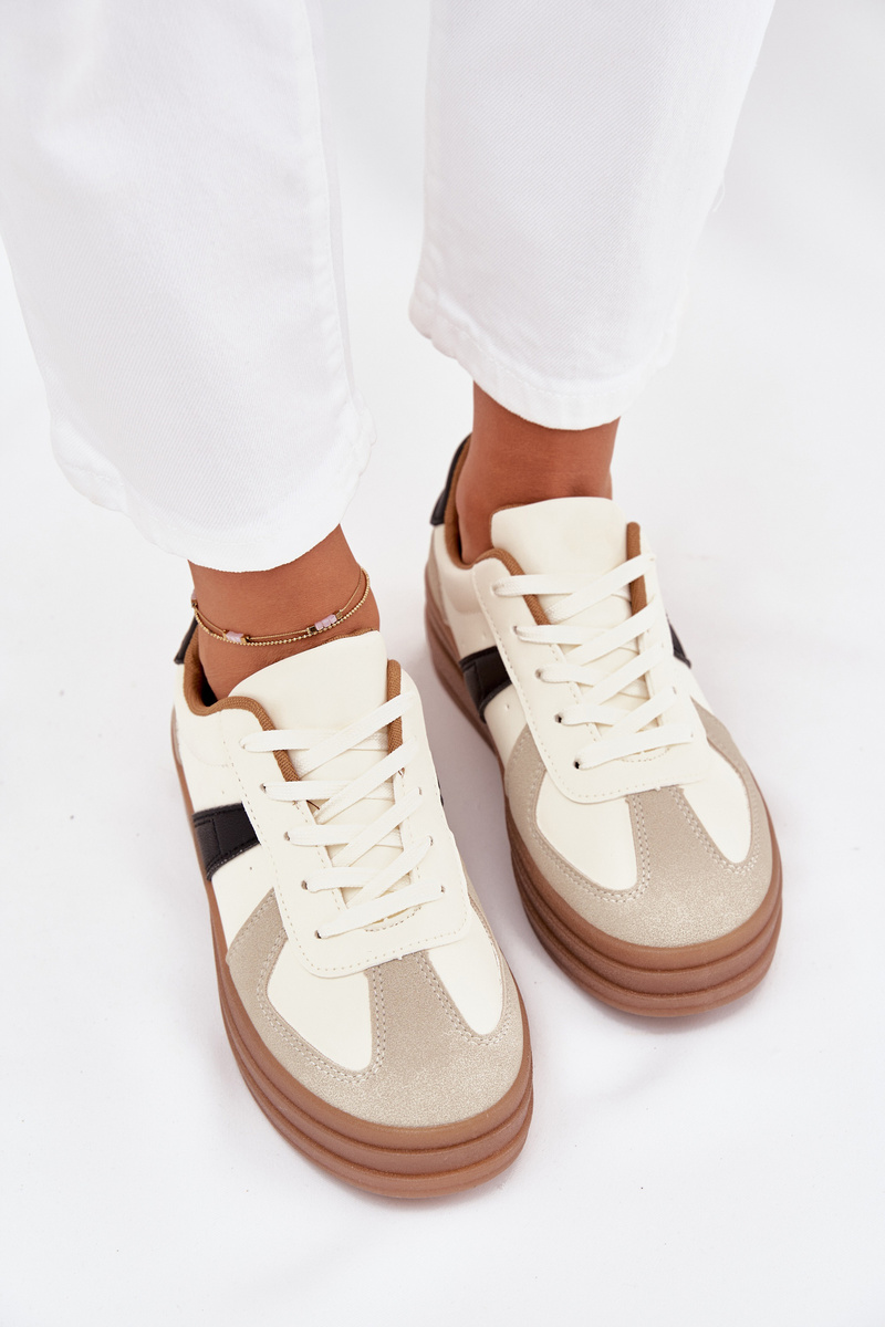 Damskie Sneakersy Eko Skóra Platforma Beżowe Sivirae