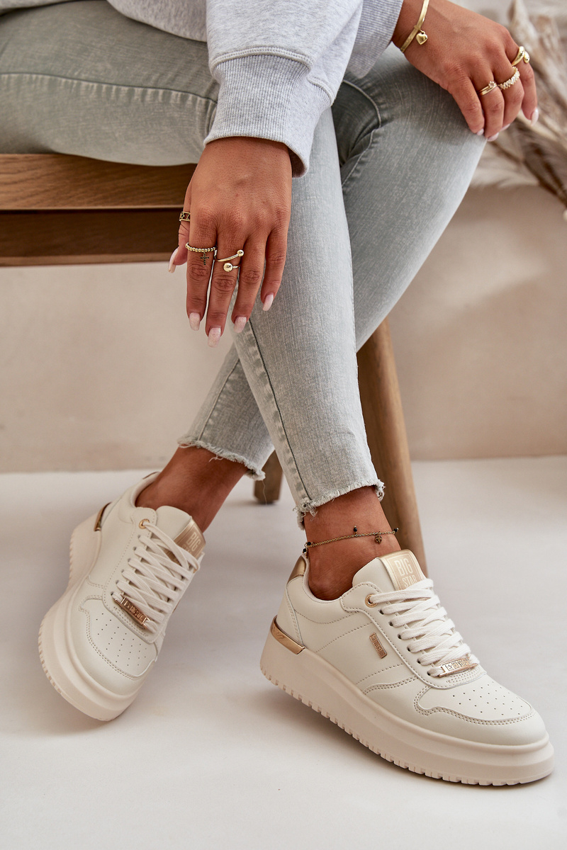 Damskie Sneakersy Eko Skóra Platforma Białe Big Star OO274757 HI-POLY SYSTEM