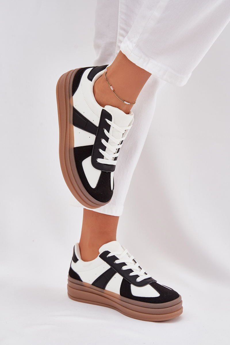 Damskie Sneakersy Eko Skóra Platforma Biało-Czarne Sivirae