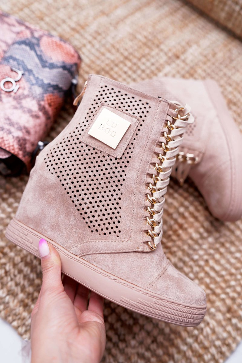 Damskie Sneakersy Lu Boo Ażurowe Zamszowe Beżowe Clamma