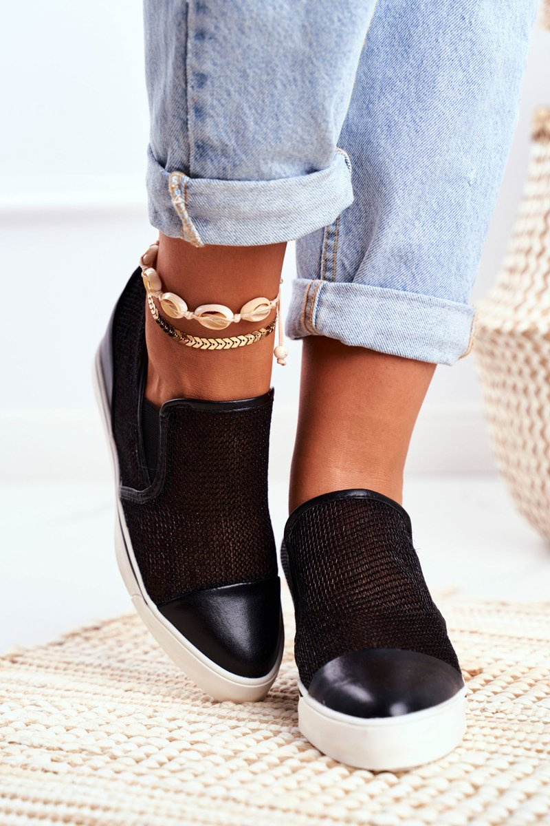 Damskie Sneakersy Lu Boo z Siateczką Czarne Morgono