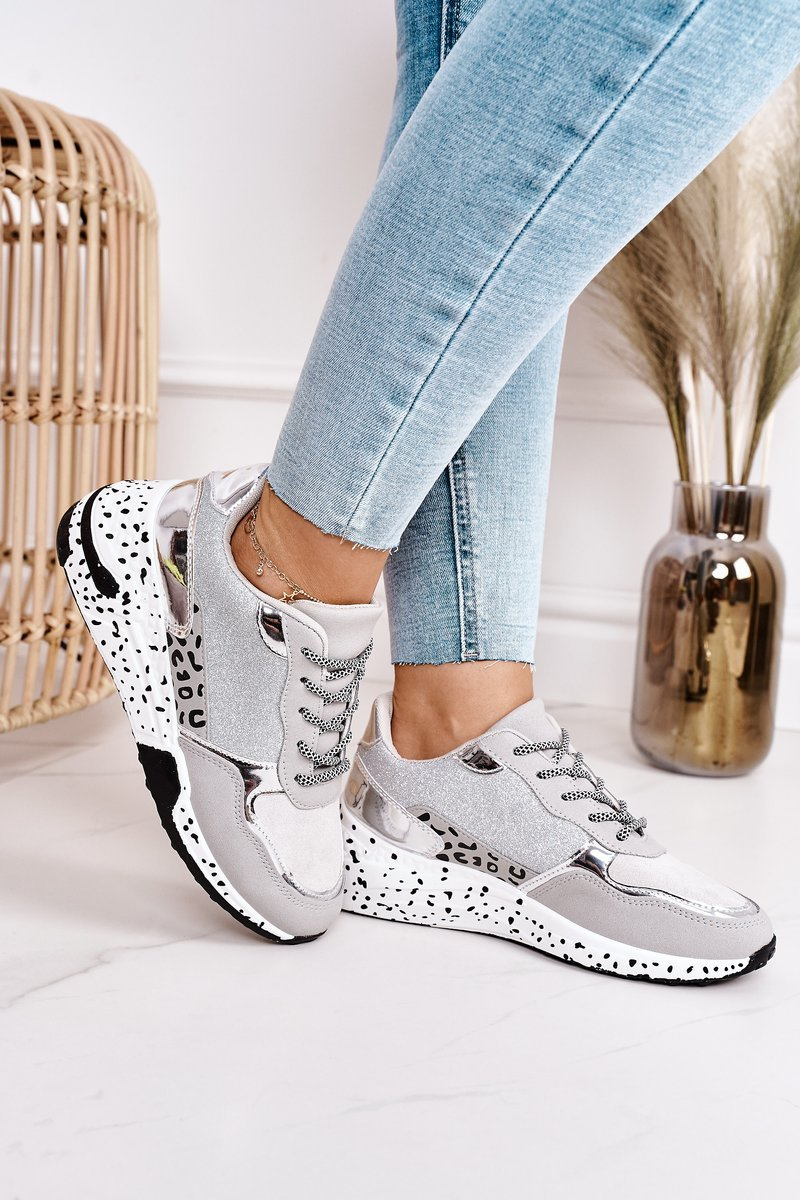 Damskie Sneakersy Na Koturnie Srebrne Avery