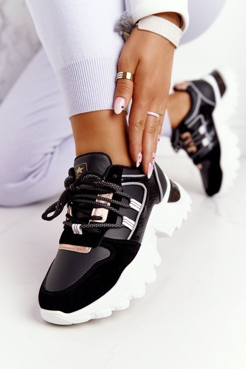 Damskie Sneakersy Na Masywnej Podeszwie Czarne Power