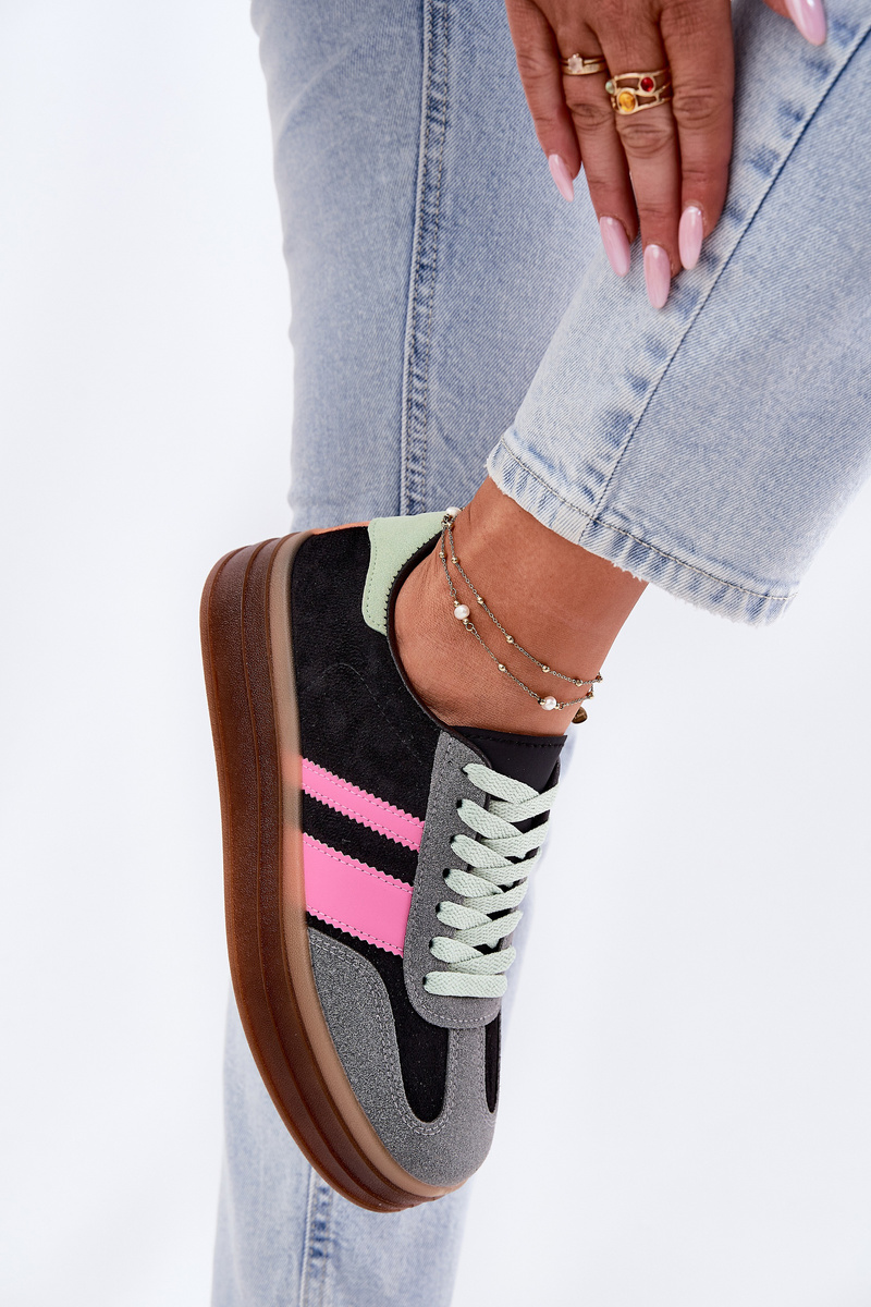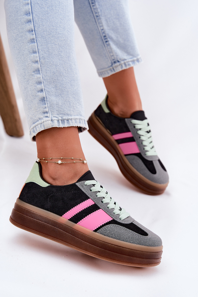 W szafie każdej kobiety powinna znaleźć się para wygodnych butów sportowych. Buty te wyróżniają się wygodą w użytkowaniu oraz wysoką jakością wykonania. Płaska podeszwa na delikatnej platformie świetnie izoluje od podłoża. Wykorzystasz je w wielu sytuacjach – podczas joggingu, spaceru czy spotkania ze znajomymi. Stylowe sneakersy wykonane z połączenia materiału tekstylnego i eko skóry. Osadzone na platformie, dodają wysokości. Model ten posiada wyjmowaną wkładkę z pianki, która zapewnia doskonałą amortyzację i łatwość w utrzymaniu higieny. To sneakersy stworzone z myślą o codziennym użytkowaniu, które skutecznie łączą wygodę z najnowszymi trendami.